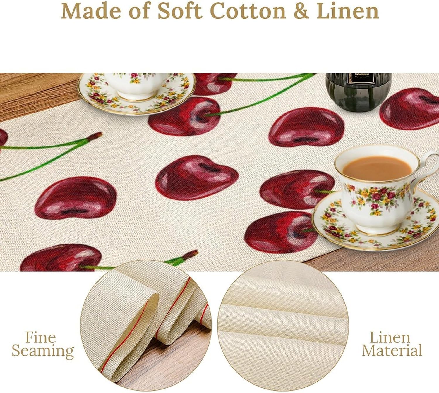 Red Cherry Table Runner Watercolor Spring Summer Wild Berry Tropical Fruit Theme Dinner Runner for Girl Baby Shower Party Holiday Home Kitchen Dining Table Decor 13x70