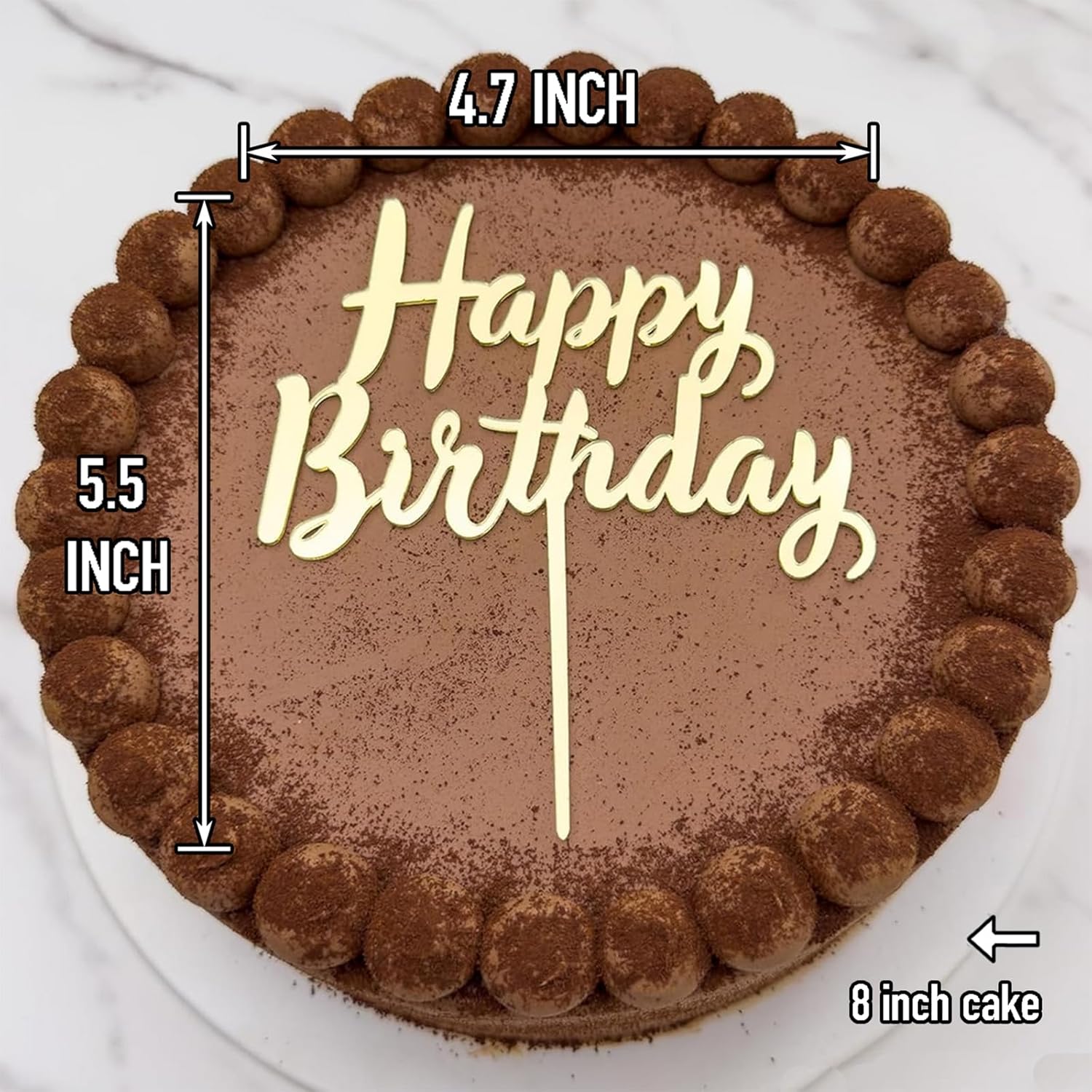 6-Pack Acrylic Birthday Cake Toppers, Minimalist Gold Happy Birthday Sign for Cake Decorations