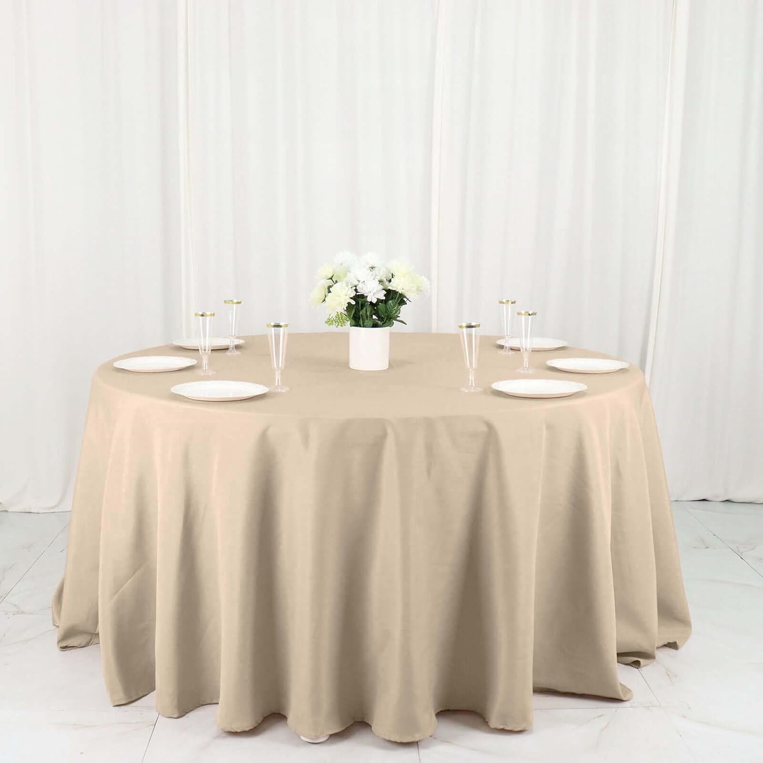 Efavormart Round Tablecloth, 132 Inch Stain & Wrinkle Resistant Washable Table Cloth, Decorative Polyester Fabric Table Cover for Banquet, Wedding, Dining- Nude Beige