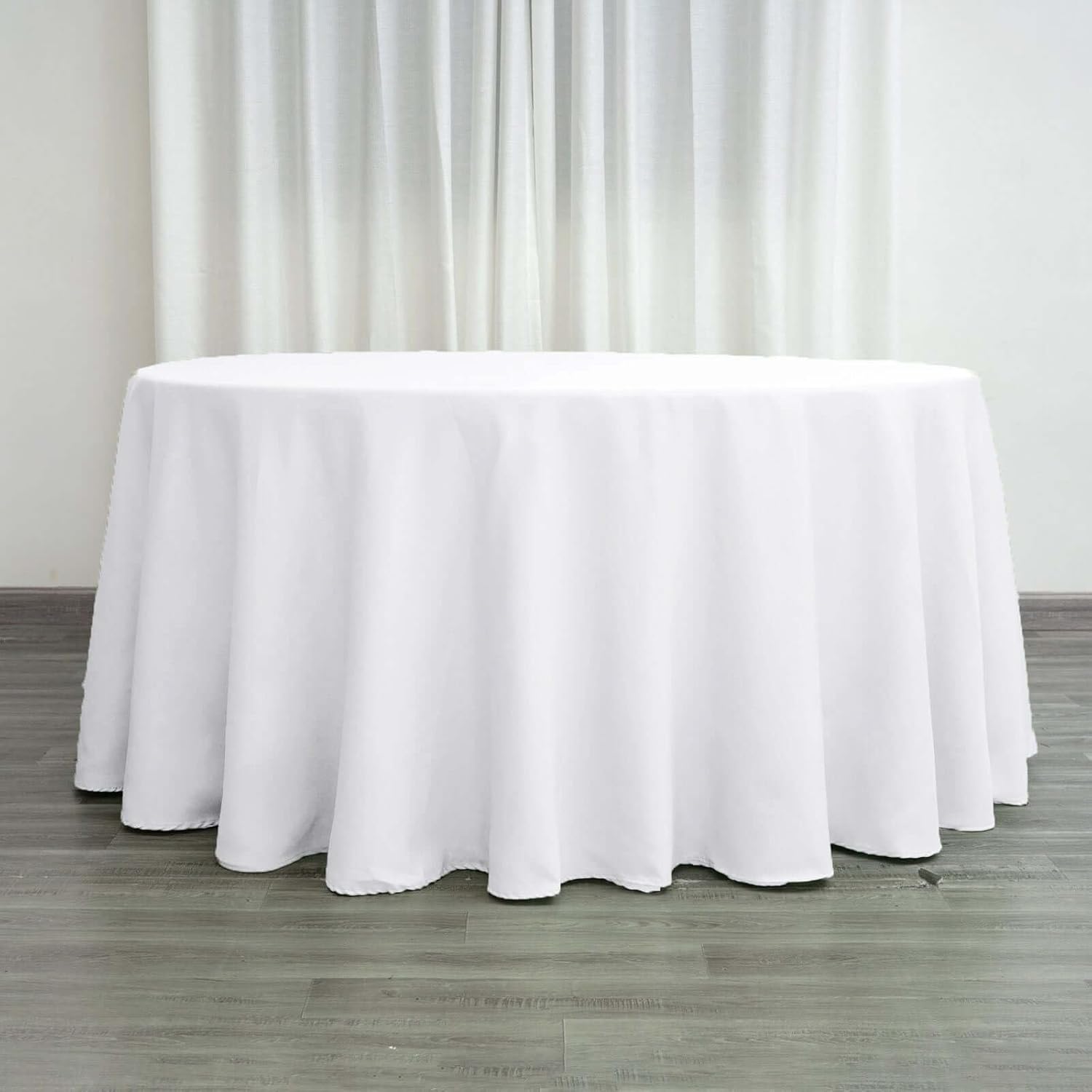 Efavormart Round Tablecloth, 120 Inch Stain & Wrinkle Resistant Washable Table Cloth, Decorative Polyester Fabric Table Cover for Banquet, Wedding, Dining - White