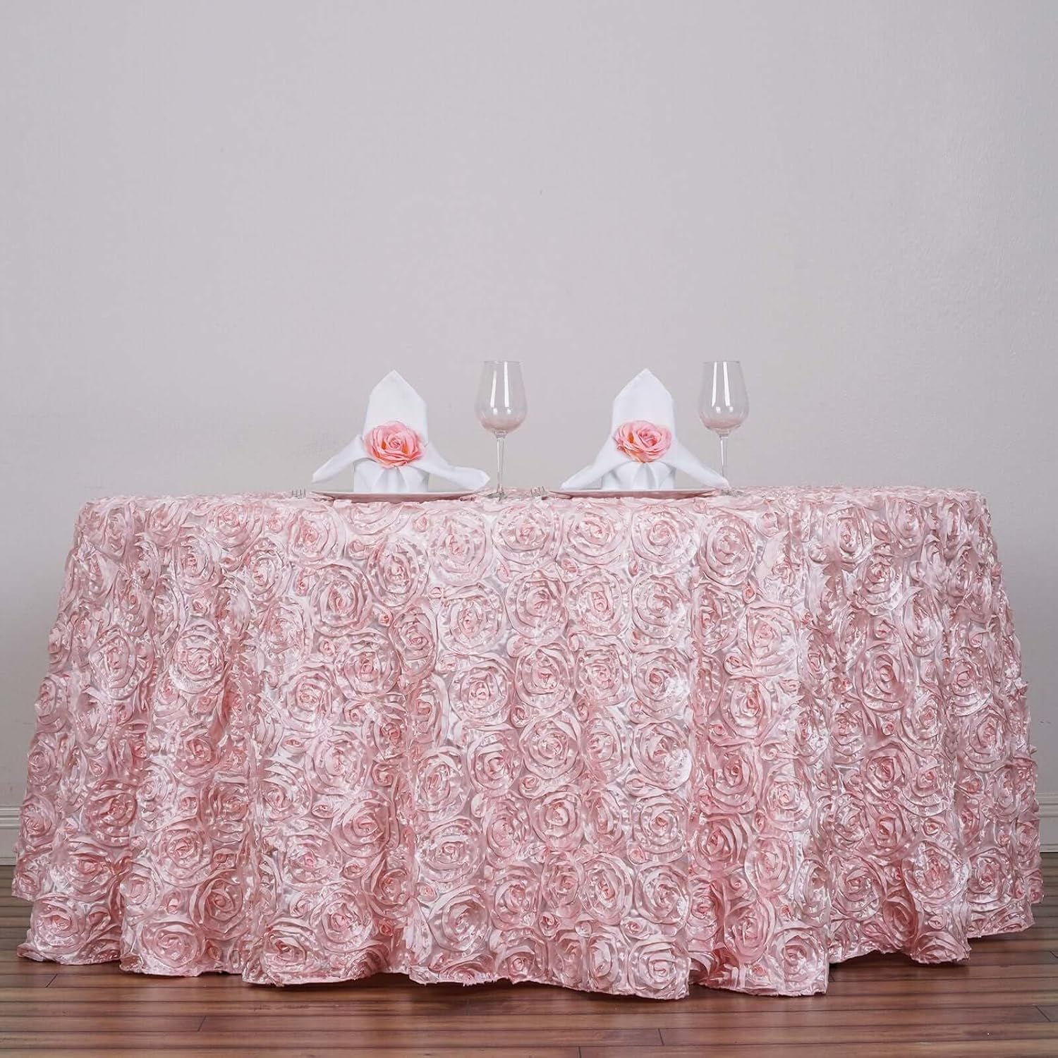 Efavormart 120" Wholesale Round Table Cover Blush Grandiose Rosette 3D Satin Tablecloth for Wedding Party Event Decoration