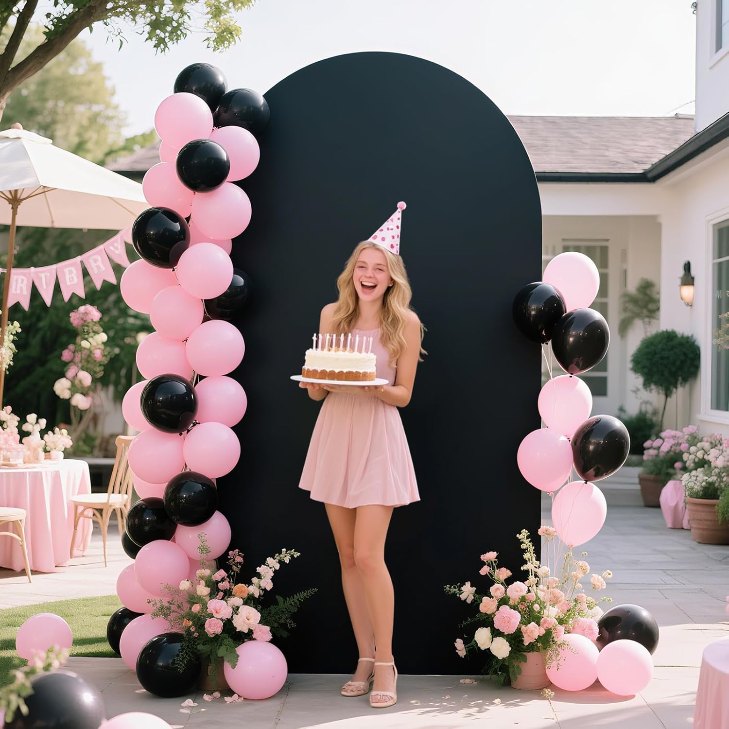 Ledido Wedding Arch Backdrop Cover 7.2FT Arch Covers Fitted Stretchy Spandex Round Top Stand Backdrop Cover for Wedding Banquet Ceremony Birthday Party Baby Shower Event Decoration,Black