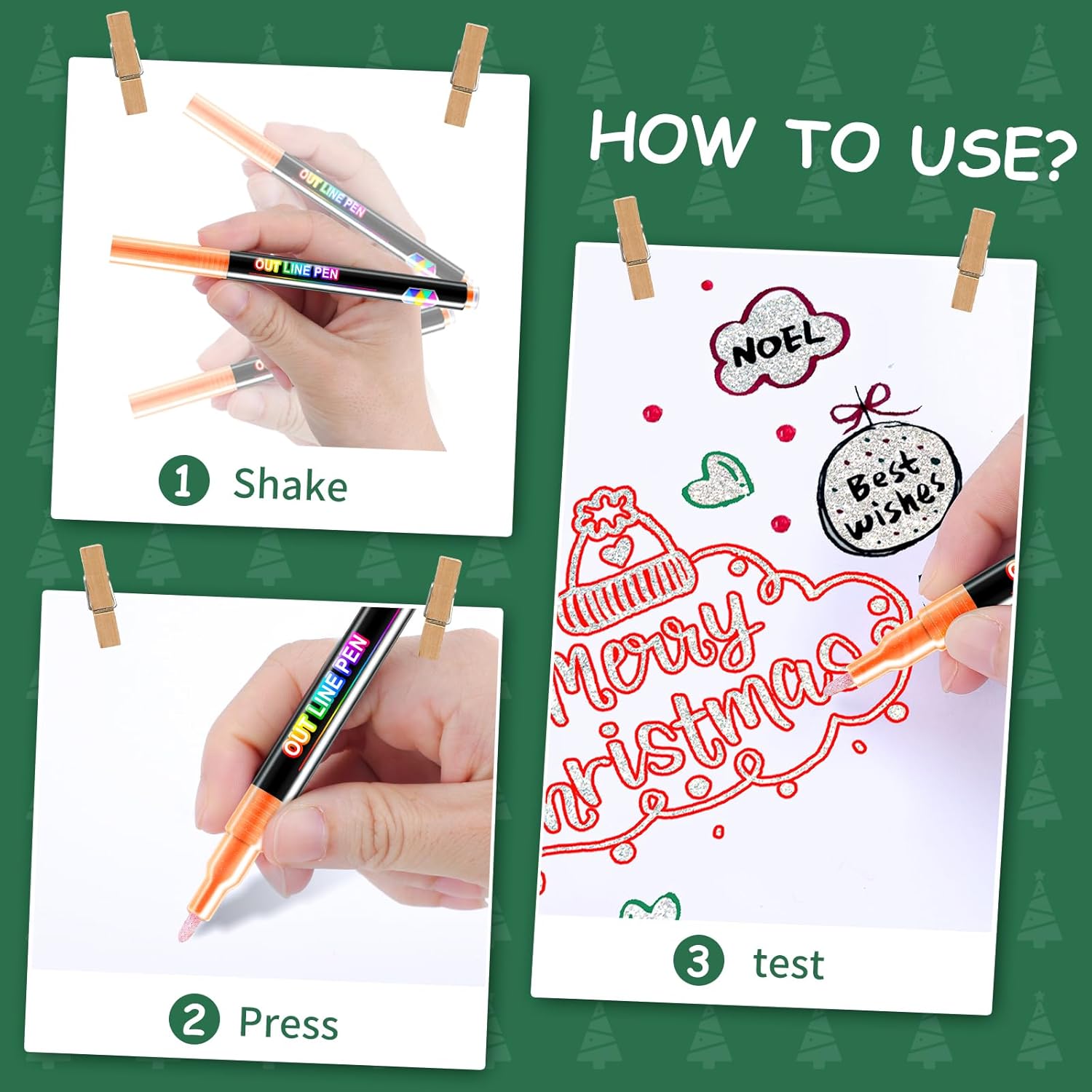 - ❤【Unique glitter pen】You will receive 12 bright colors Outline Markers with double line and glitter effect.Unique technology automatically generates bright colored contours around the silver pen core.It is a must-have gift for sparkling festivals.Ideal for arts and crafts for girls ages 8-12.