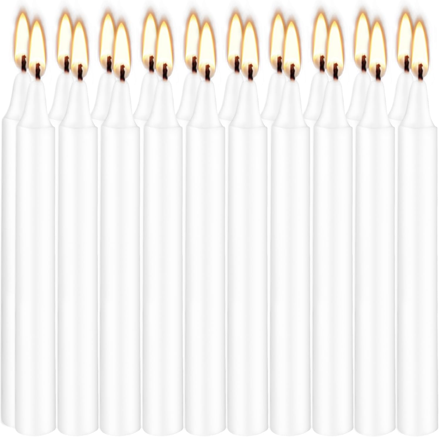 - LONG-LASTING: A set of 20 taper candles burning time of 30 hours, 1.5 hours each,Candles are for everyday use and special occasions.