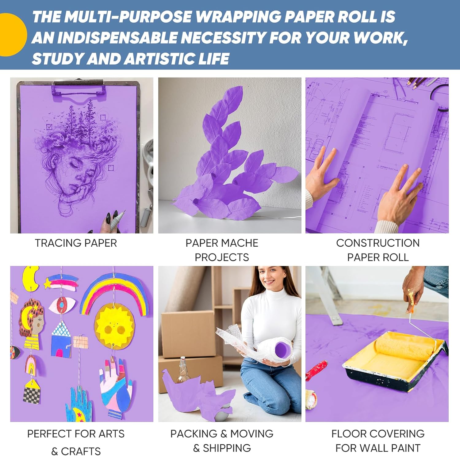 - 【Endless Purple Packing paper】With 38 feet of packing paper in a roll, you have enough paper to complete multiple projects without having to constantly restock. It saves you time and money compared to buying smaller rolls or sheets of paper. This blank canvas is a must-have paper roll item for packing, crating, shipping, moving, mailing, postal, parcel, sublimation printing, packaging fillers, table runner and floor coverings