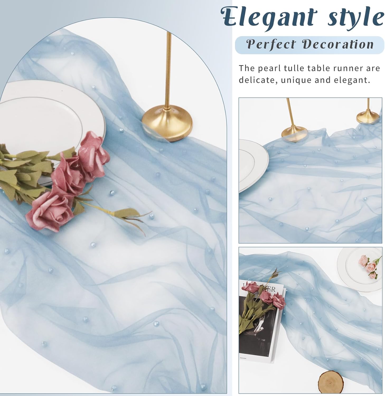 - 【Package Include】 You will receive 6 pieces of 29 x 120 inches pearl tulle table runners, the quantity is sufficient for your daily use and replacement needs, it's long enough to fit different size tables and chairs, These tulle table runner with pearls are skin-friendly. There are lots of different colors for you to choose. Perfect to decorate your tables.
