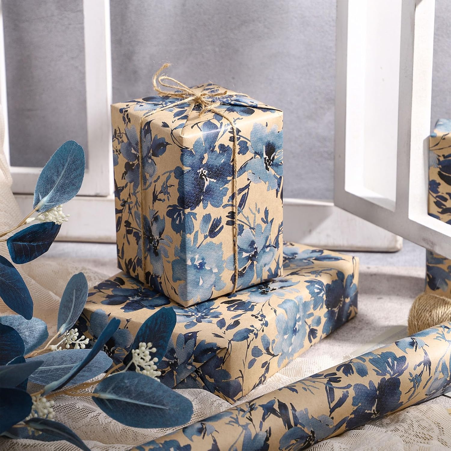 - Blue Floral Wrapping Paper Roll: Adorn your gifts with a watercolor blue flower print that exudes charm and elegance. The blue flower wrapping paper make it ideal for creating a wonderful gift presentation that leaves a lasting impression