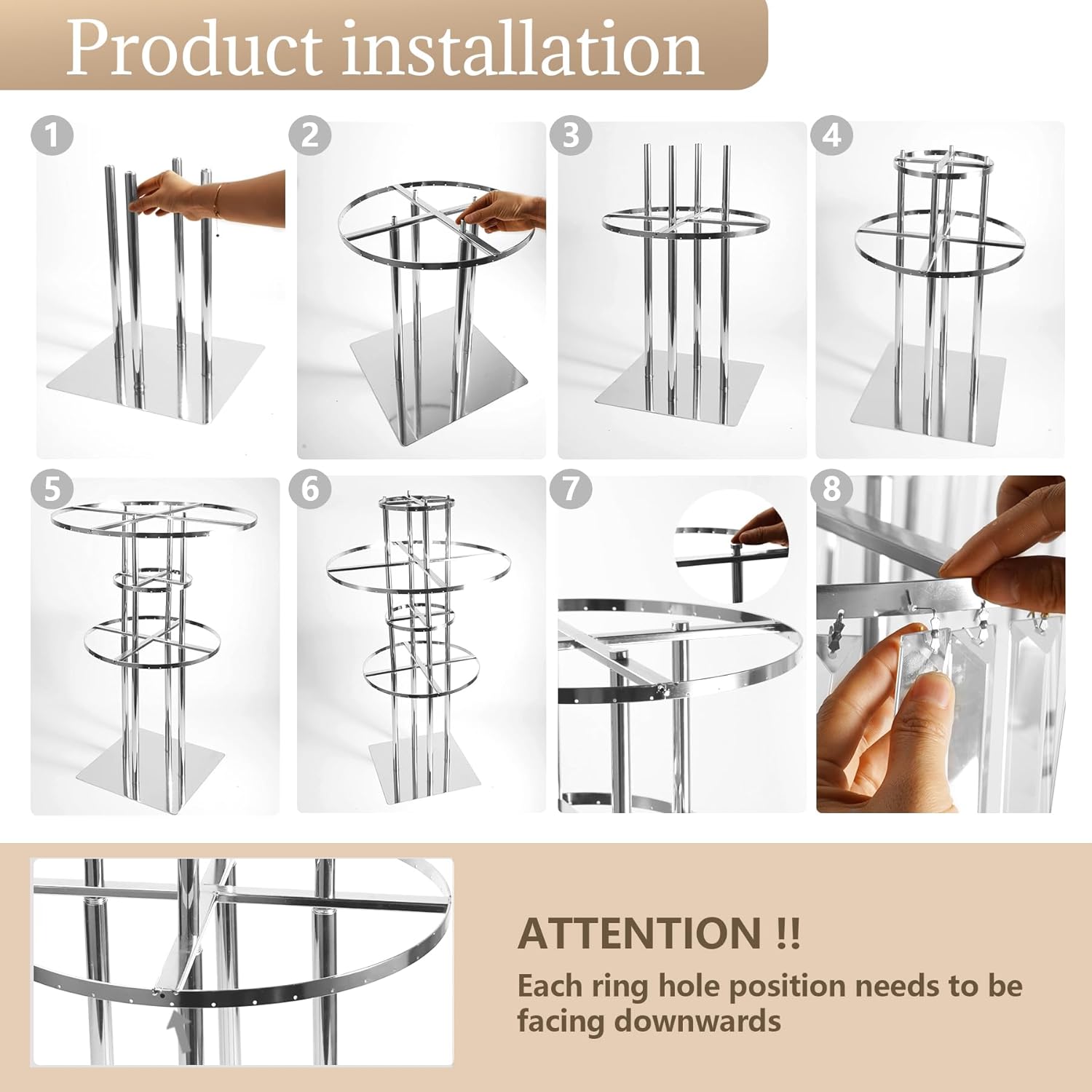 - Warmly Notice: The chandelier centerpiece is very easy to clean, it can be removable easily, so you can clean it with a damp cloth.The product as a whole is made of metal, and the hanging chain is crystal. When installing the hanging chain, it is necessary to avoid the hook scratching the flower stand, and the protective film of the base needs to be torn apart.