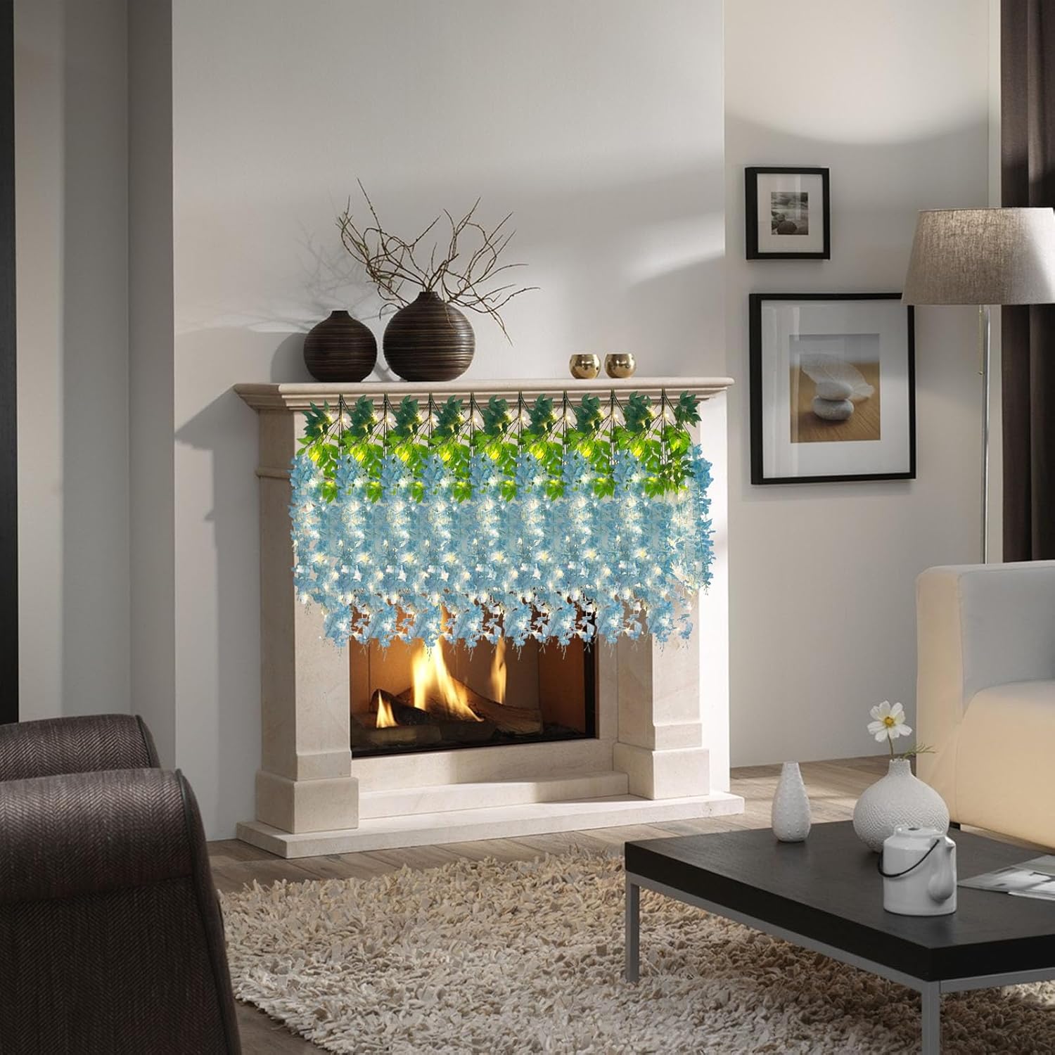 - 【Package Included】12 pieces of silk lake blue wisteria hanging flowers, each length 41.27 inches. Every artificial wisteria garland has 3 branches and 6 leaves, the wisteria flower petal length is 21.62 inches. It also comes with a warm light string that requires 2 AA batteries (Note: There may be some color differences in different lights, product not include batteries)