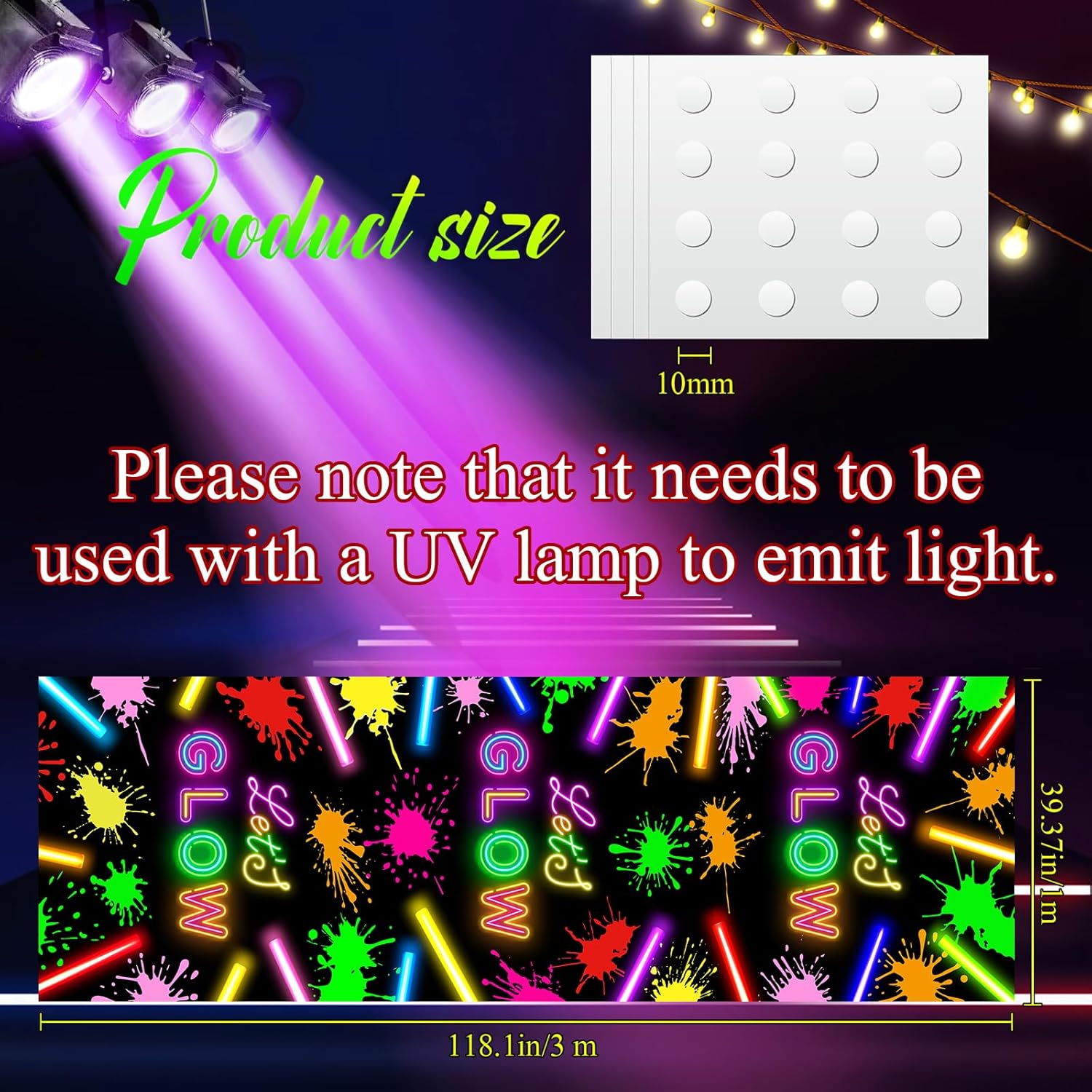 Haull 118 x 39 Inch Neon Light up Dance Floor Glow in The Dark Runner UV Reactive Blacklight Floor Aisle Runner Decor Wall Props for 80s 90s Neon Birthday Party Decorations(Let's Glow)