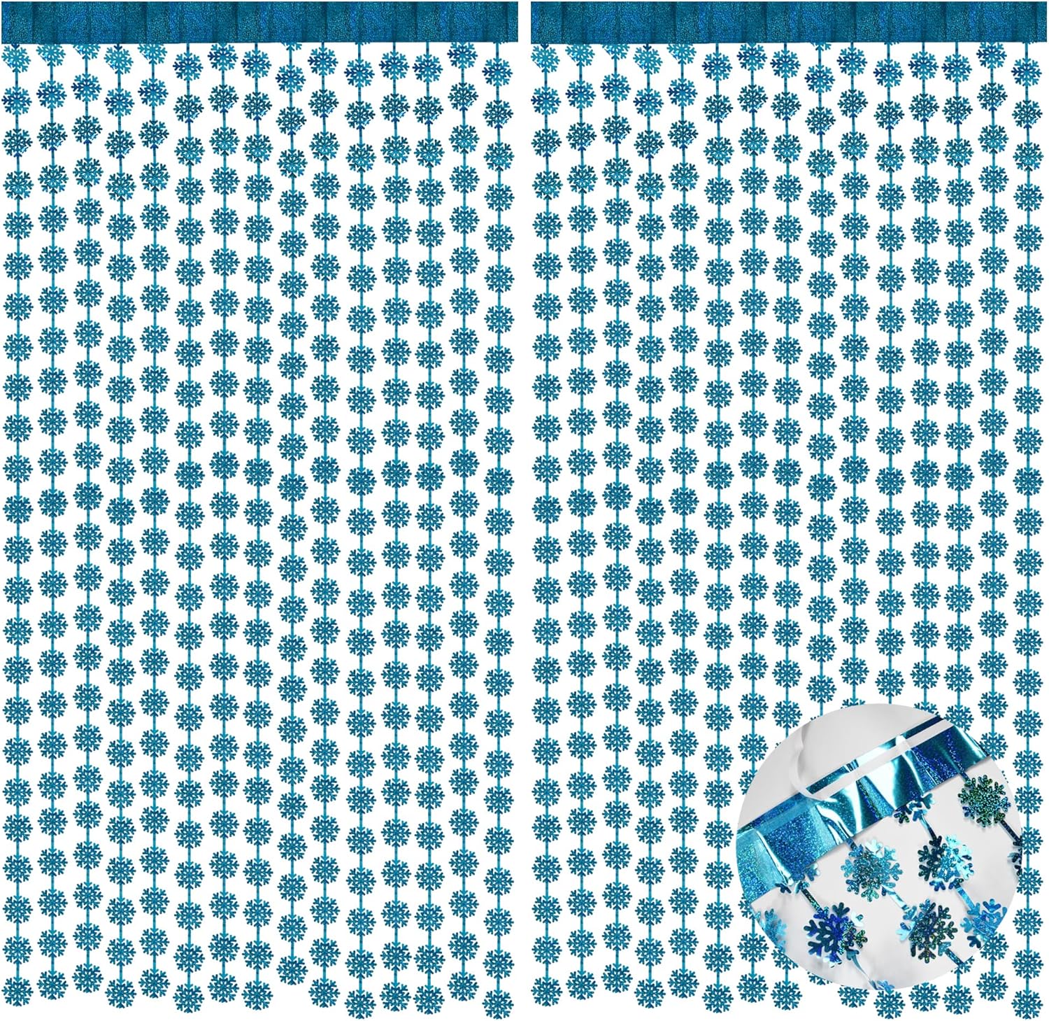 BRAVESHINE Blue Party Snowflake Backdrop - 2 Pack Hanging Foil Fringe Snow Flakes Party Streamers Curtain for Christmas Winter-Themed Frozen Birthday Baby Shower Holiday New Year Party Decorations