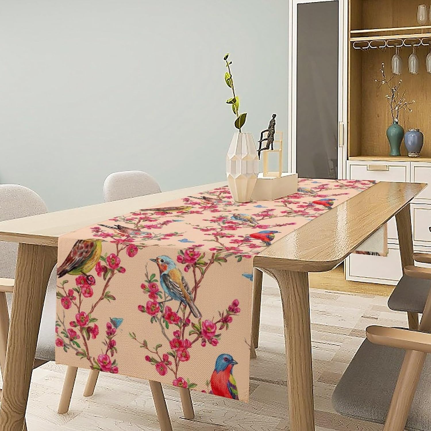 Floral Butterfly Table Runner Seasonal Spring Flower Bird Table Decoration Table Runner for Home Party Decoration 13x108 Inch