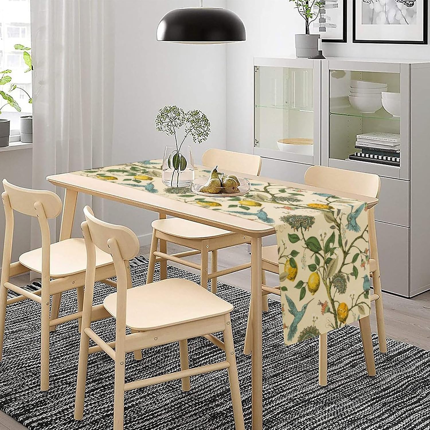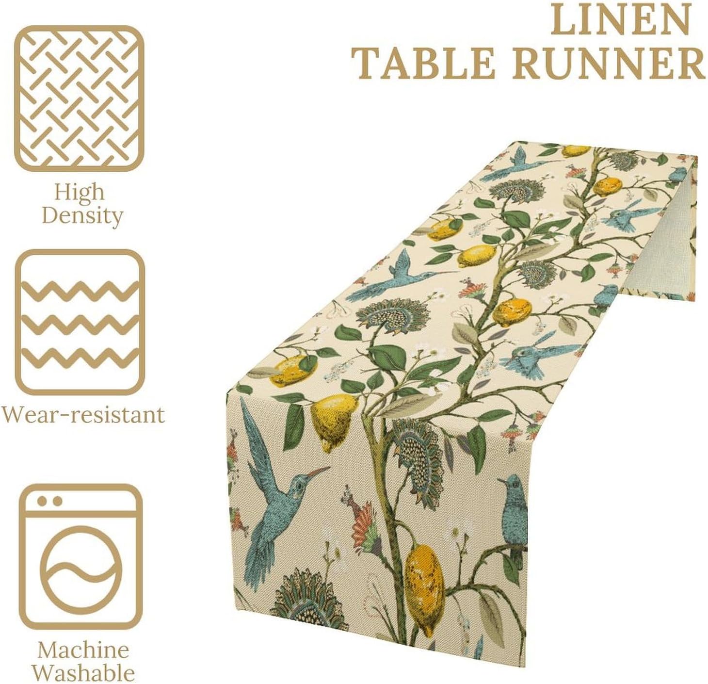 Table Runner with Flowers and Birds, Spring Plant Flowers Table Decoration Linen Table Runner Family Party Party Decorations 13x108 Inches