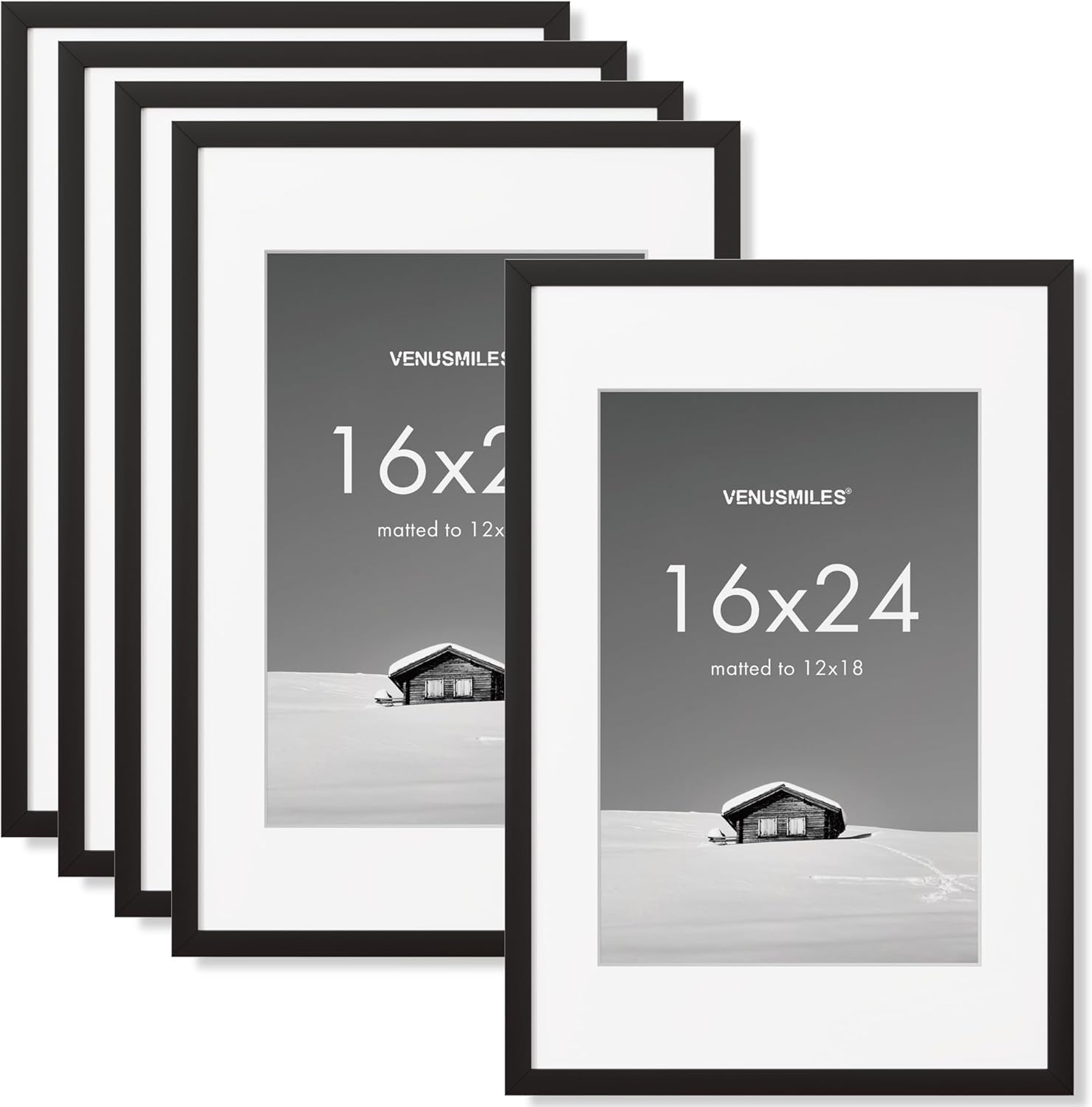 16x24 inch Picture Frame, 16x24 Photo Frames with 12x18 Removable Mat - High Definition Plexiglass - Vertical and Horizontal Display - Wall Hanging Poster Frame - Black, 5 Pack