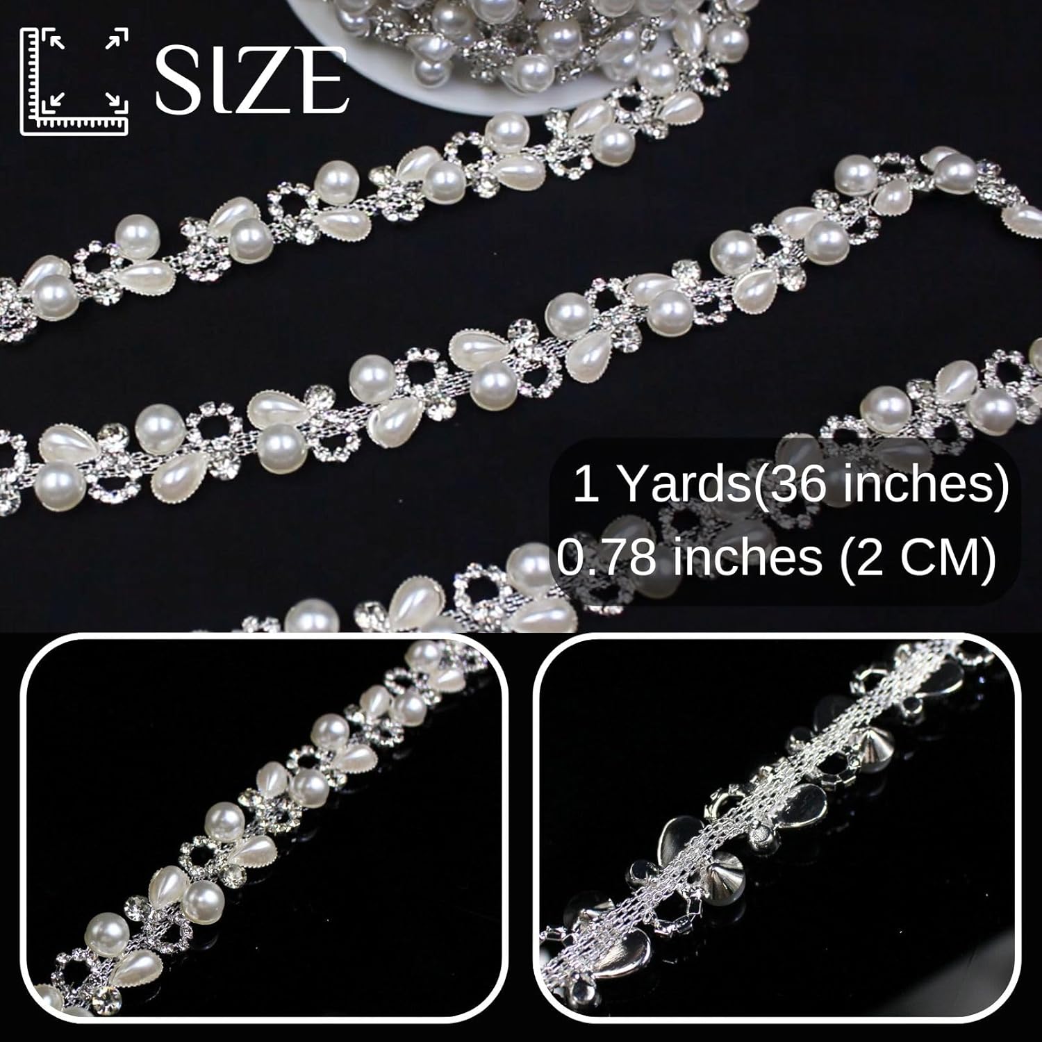 - Size: You will receive one roll of rhinestone chain, approximately 1 yard long and 0.78 inches (2 cm) wide, which is sufficient to meet your various decoration needs. You can also share it with friends or family. It's perfect for sewing trim and embellishments, and pearl garlands are also a great choice