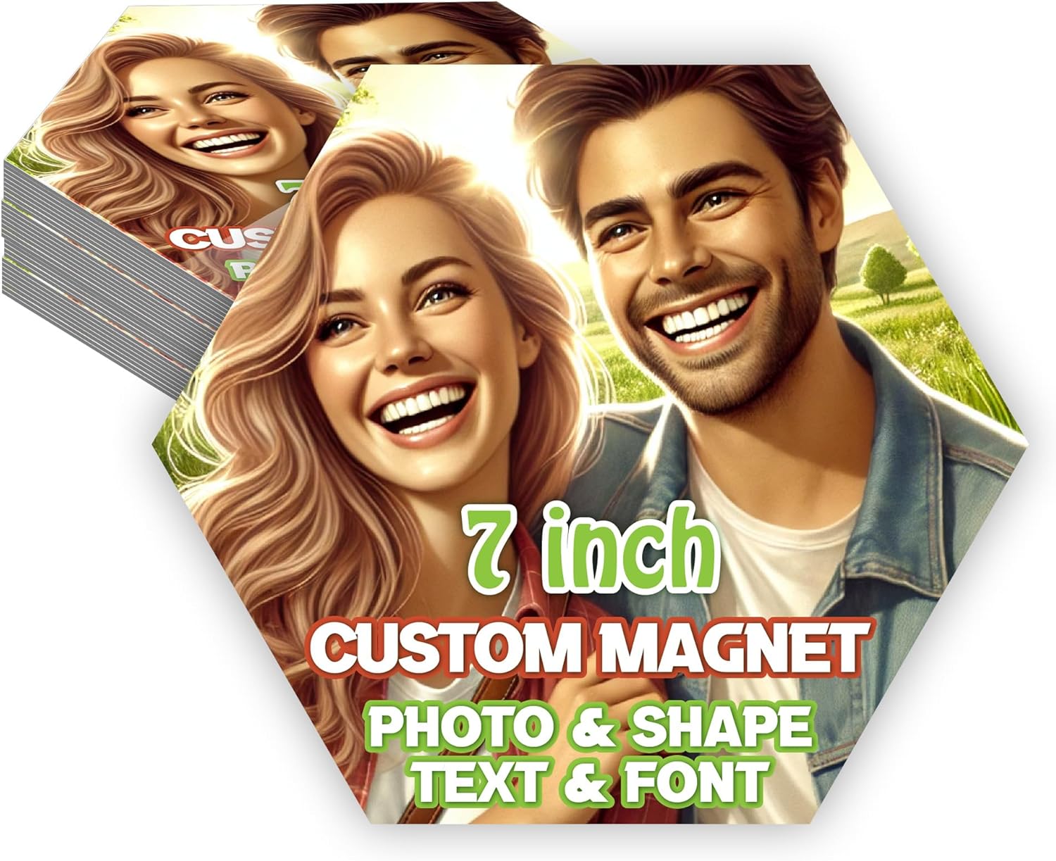 KETABAO ā 7" Customized Hexagon Magnetic Pictures Photo Magnet for Refrigerators, Storage Cabinets and Cars ā Personalized Gift Ideas