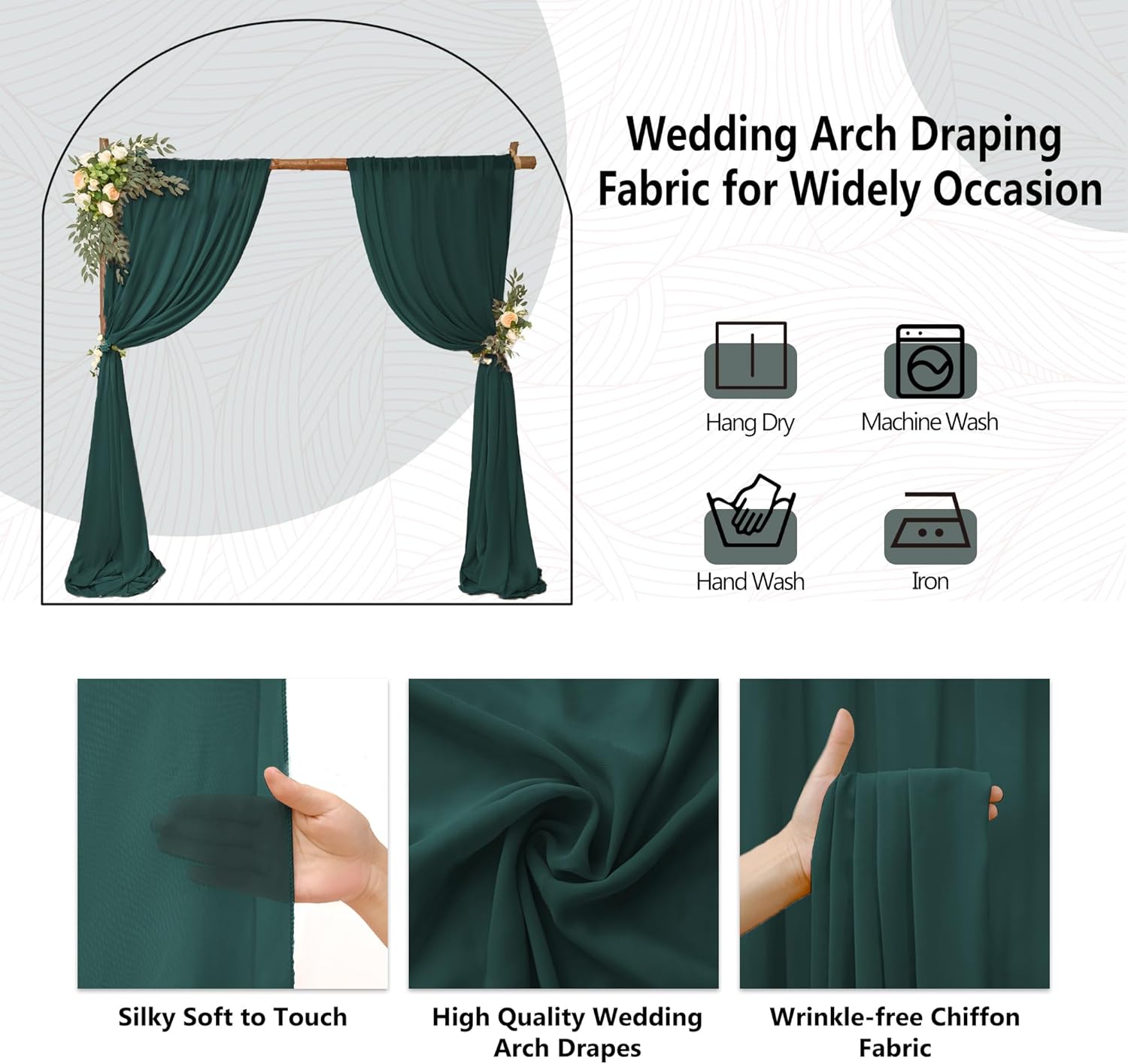 - 【Easy to Clean and Care】To keep the texture of the wedding arches, it is recommended that machine wash in a laundry bag or hand wash in cold water with mild detergent. With a steam iron, wrinkles will disappear and can be used repeatedly. To keep the wedding arch drapery for long time use, no bleach, lay flat or hang to dry. Please note that there may be a little color difference due to the difference in the display. Any problem, please feel free to tell us, we will do our best to help.