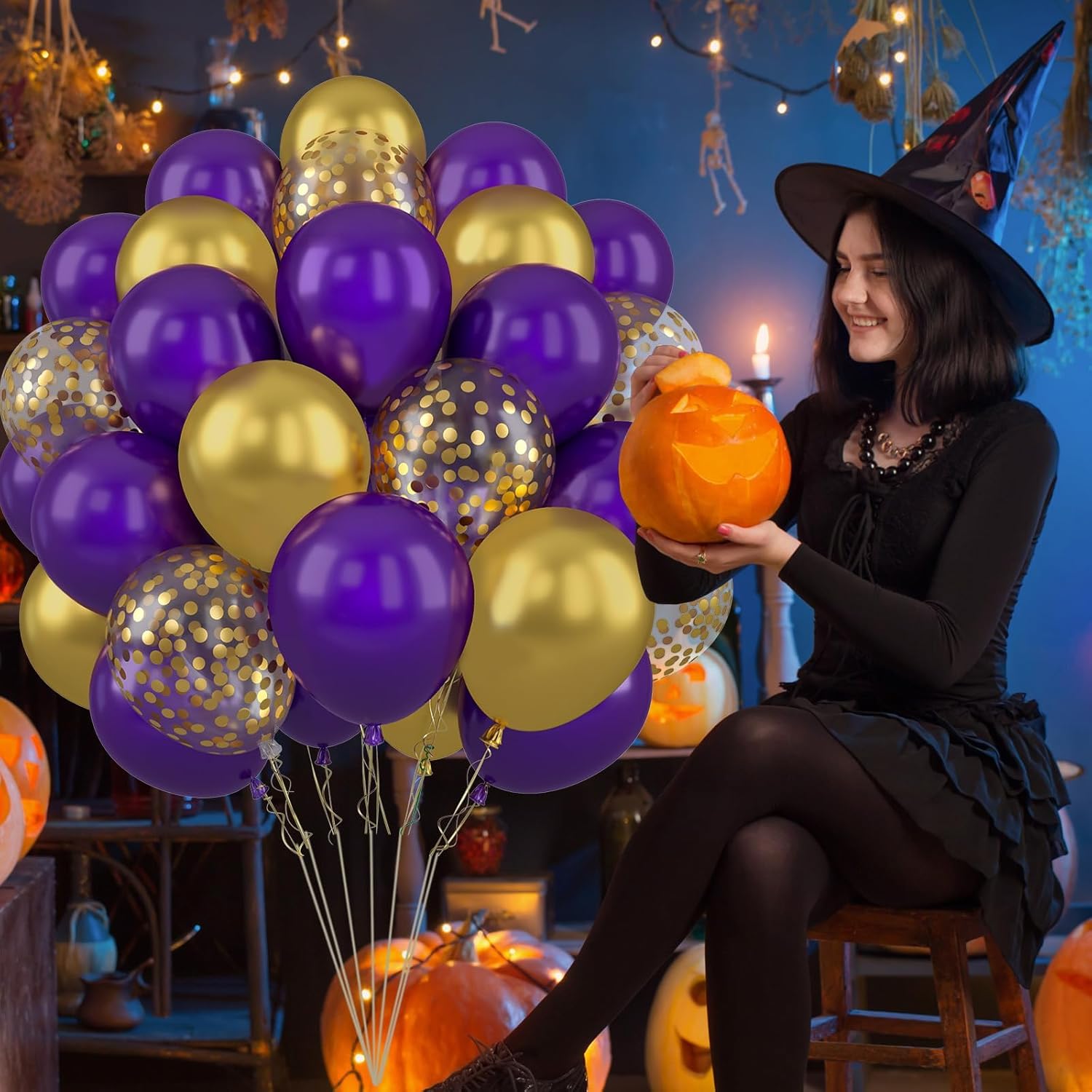 - What You Get - The purple gold balloons include 50 balloons, 3 distinct colors: dark purple balloons x 36, metallic gold balloons x 8, confetti gold balloons x 6. Accompanying by a 10m ribbon. These striking and captivating hues will beautifully enhance your memorable and enjoyable moments!