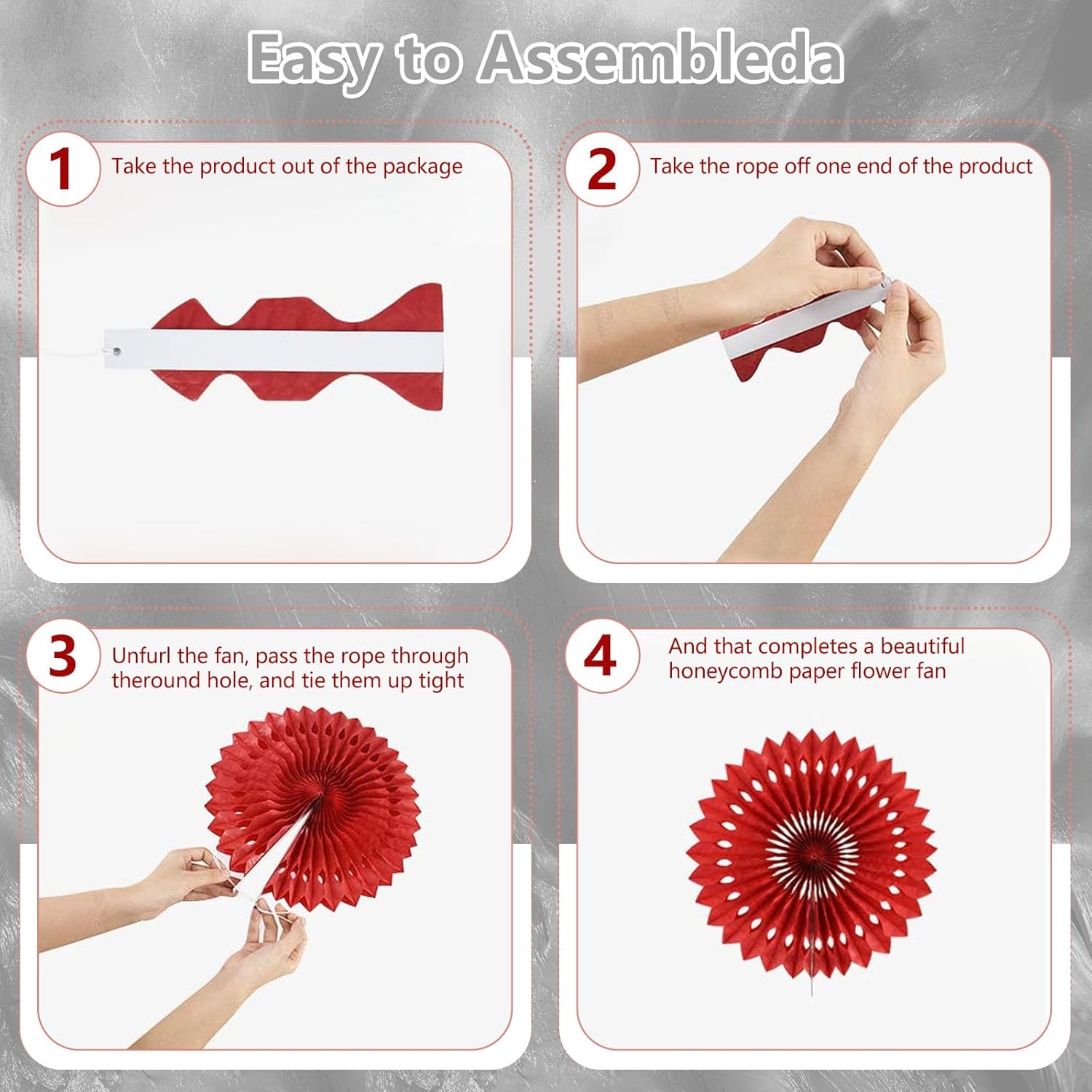 - 【Hanging paper fan set】Paper fan set includes 18 paper fans of different sizes, among which the paper flower fan size is 14 inches * 3, 12 inches * 5, 8 inches * 6, and 6 inches*6.