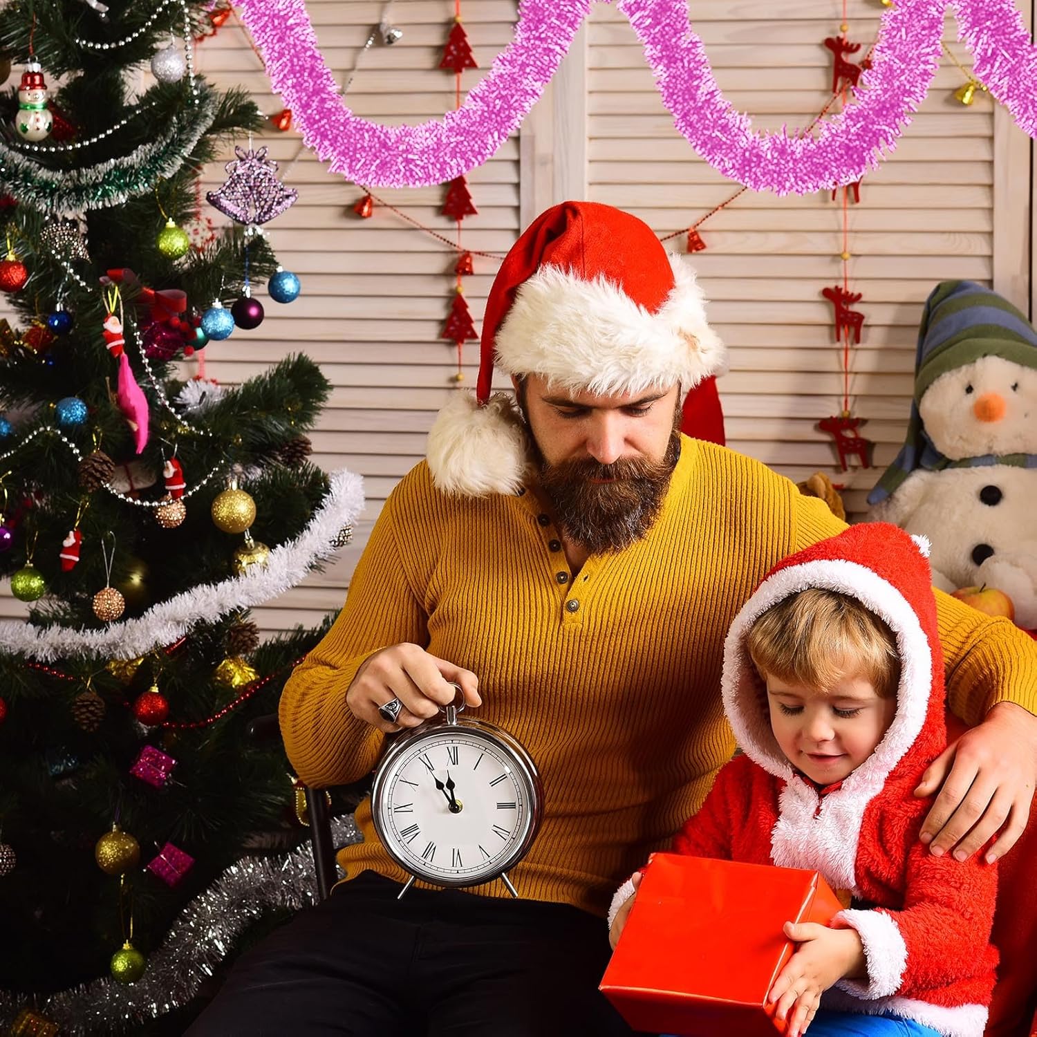 - Easy to Decor: Christmas tinsel garland include a soft, bendable wire inside, making them resistant to breakage and allowing you to shape them as you desire for your DIY Christmas tree decorations, can use glue to stick them up, also use scissors to cut to the right length, twist them into various shapes as you like, then hang it anywhere you want