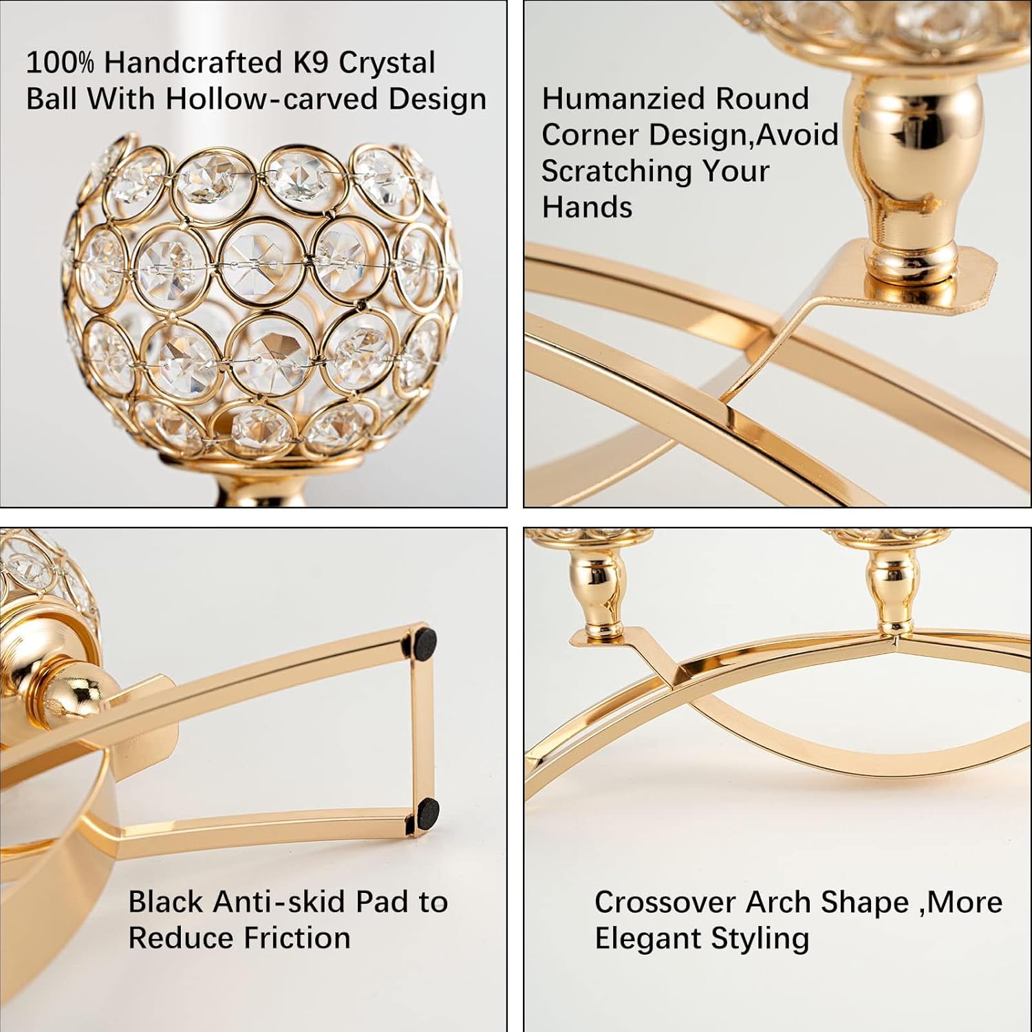 - 【 HIGH QUALITY MATERIAL】➢➣➤The candle holder bowls are made of high quality octagonal K9 crystal beads, which are shinning and transparent. Hollow-carved design delivers a sense of dignity with natural freshness. The base through pressure casting, burnish, electroplating, polishing ect. many technological processes strengthen the property of anticorrosion and rust prevention.