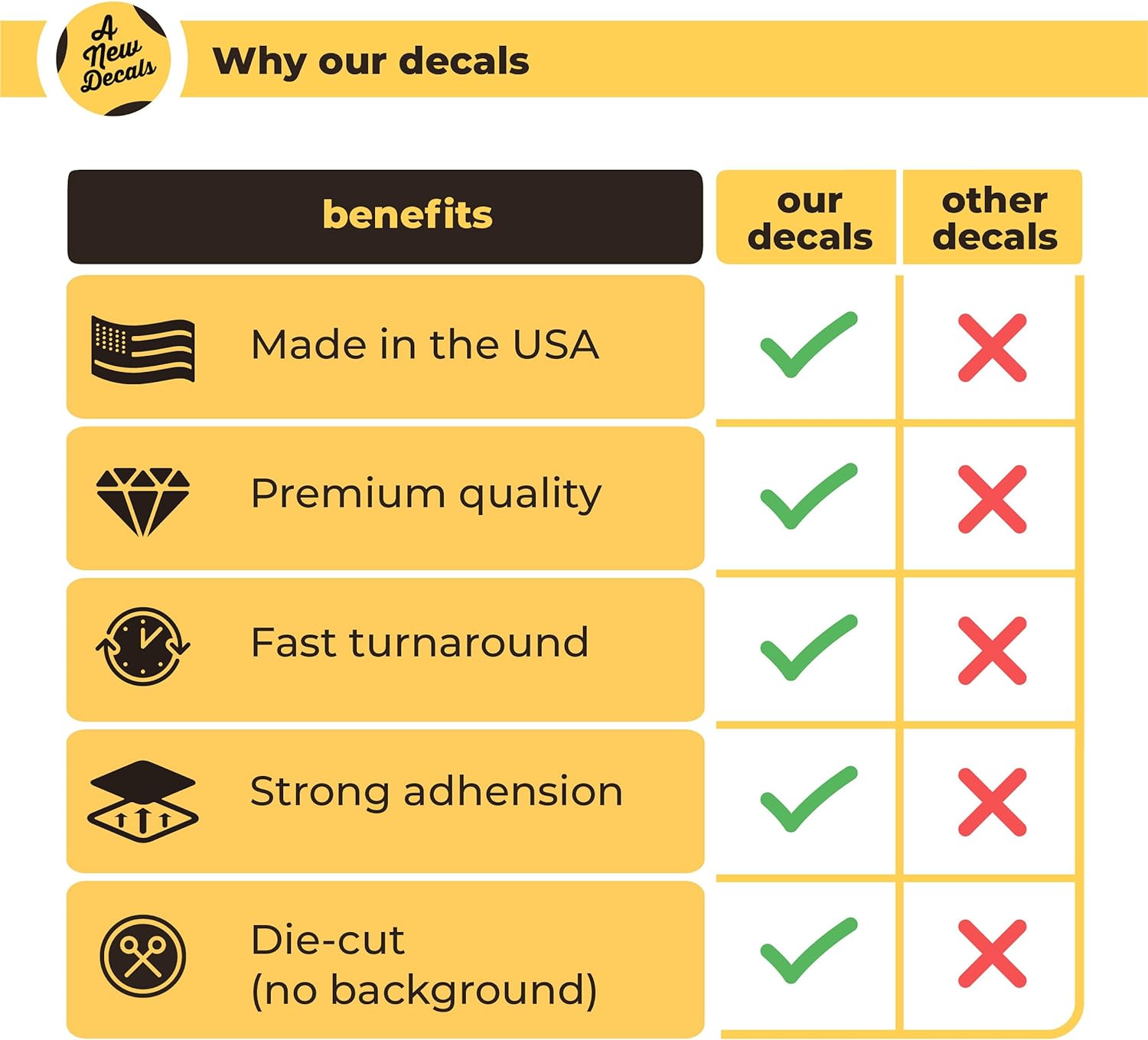 - TOP-QUALITY VINYL: Our custom vinyl decals are crafted from high-quality vinyl, 100% made in the USA, ensuring exceptional durability.