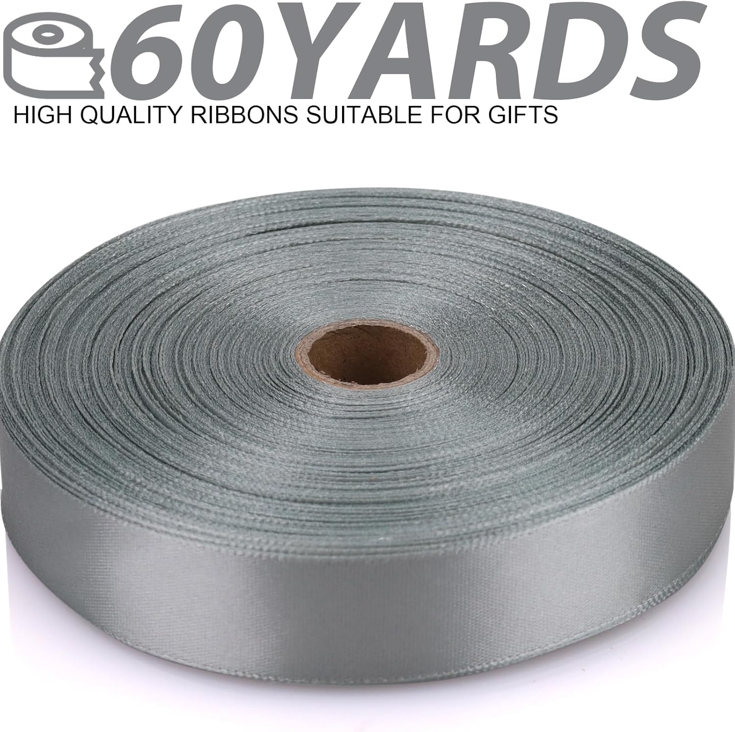 Silver Ribbon 7/8 Inch 60 Yards Satin Craft Ribbon-Single Face Polyester Ribbon for Handmade Roses,Gift Wrapping,Timeless Flower,Bouquets,Wedding and Party Decoration