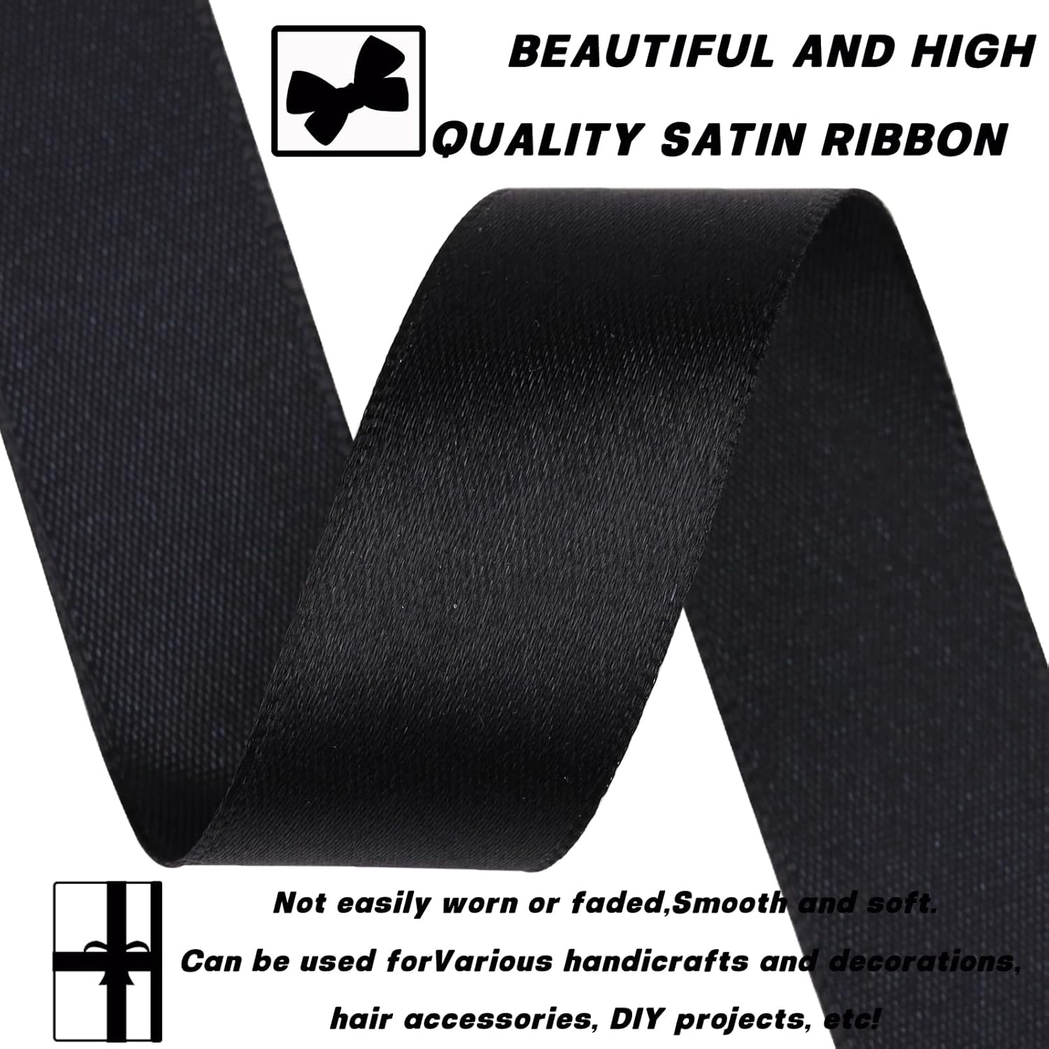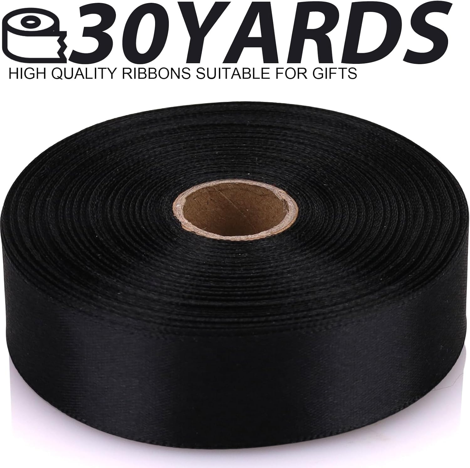 Black 7/8 Inch 30 Yards Satin Craft Ribbon - Single Face Polyester Ribbon for Gift Wrapping, Wedding Decorations, Craft Projects