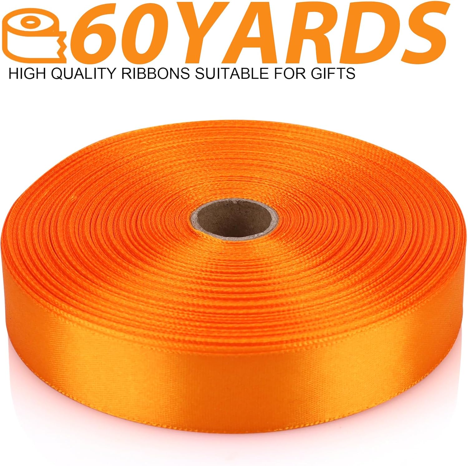 Orange Ribbon 7/8 Inch 60 Yards Satin Craft Ribbon-Single Face Polyester Ribbon for Handmade Roses,Gift Wrapping,Timeless Flower,Bouquets,Wedding and Party Decoration