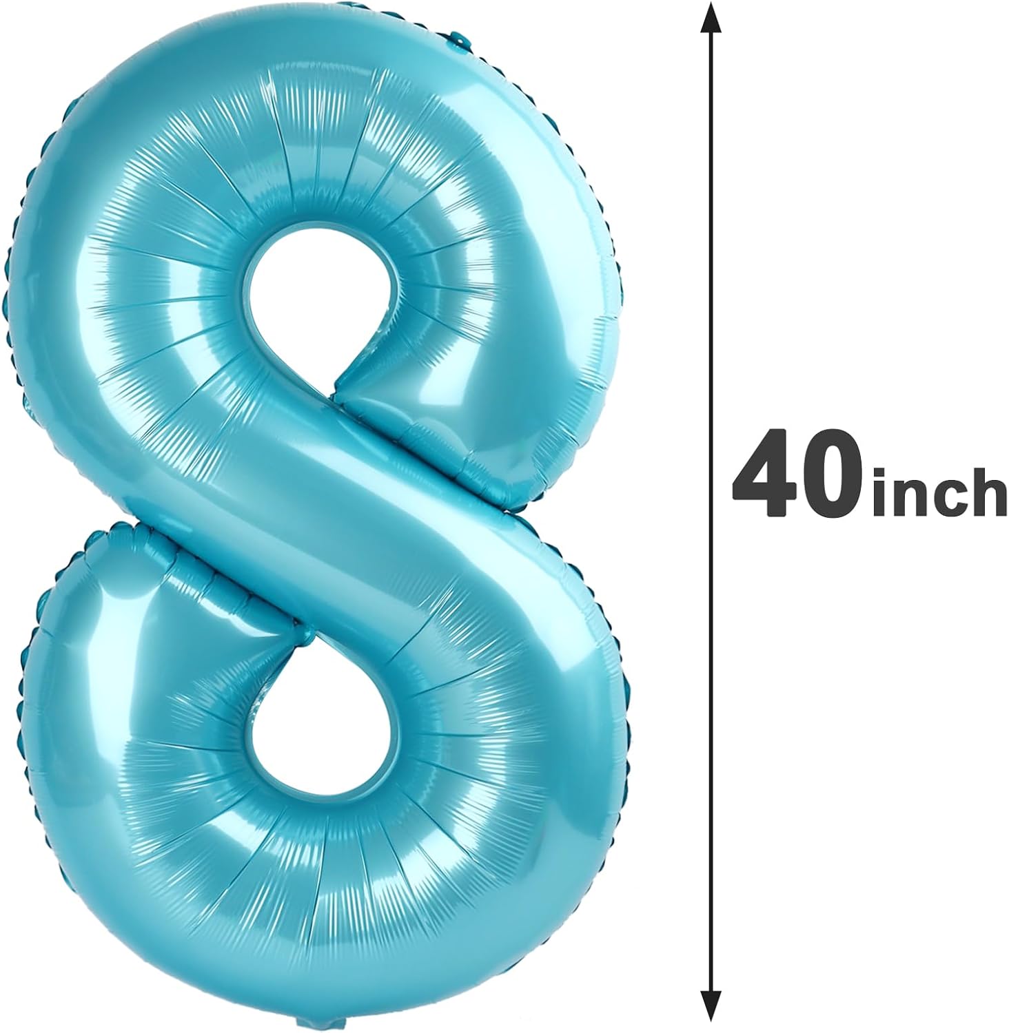 - 1.Elegant Understated Pearl Blue Number Balloons: You will receive an uninflated 40 inch number 8 balloon. Big number balloons are always the best statement of romance and surprise. Pearl blue balloons symbolize vitality exoticism, adding glamour to birthday parties. Bright pearl blue and huge size make pearl blue balloons a highlight of special parties.Choose one or more numbers from 0-9 birthday numbers,and use 8 18 28 38 48 58 68 78 80 98 balloon numbers to create a lively and charming party!