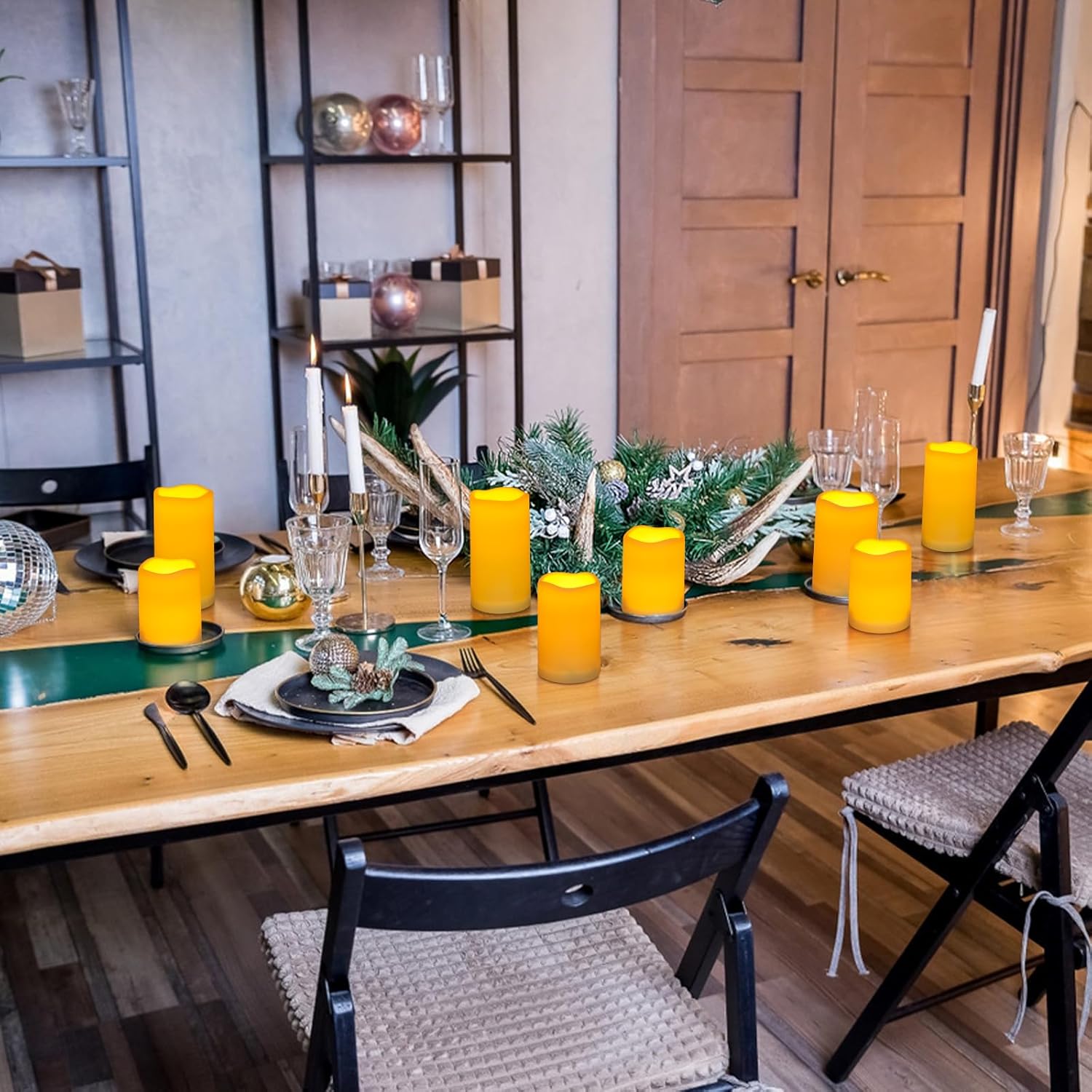 - This set of 12 Flameless Outdoor Candles. Create a romantic atmosphere instantly for wedding, parties,at home, at bars,festivals and other occasions with ease. Without the worry of fire hazards, melting wax or allergic reactions to scents, you can enjoy any event peacefully.