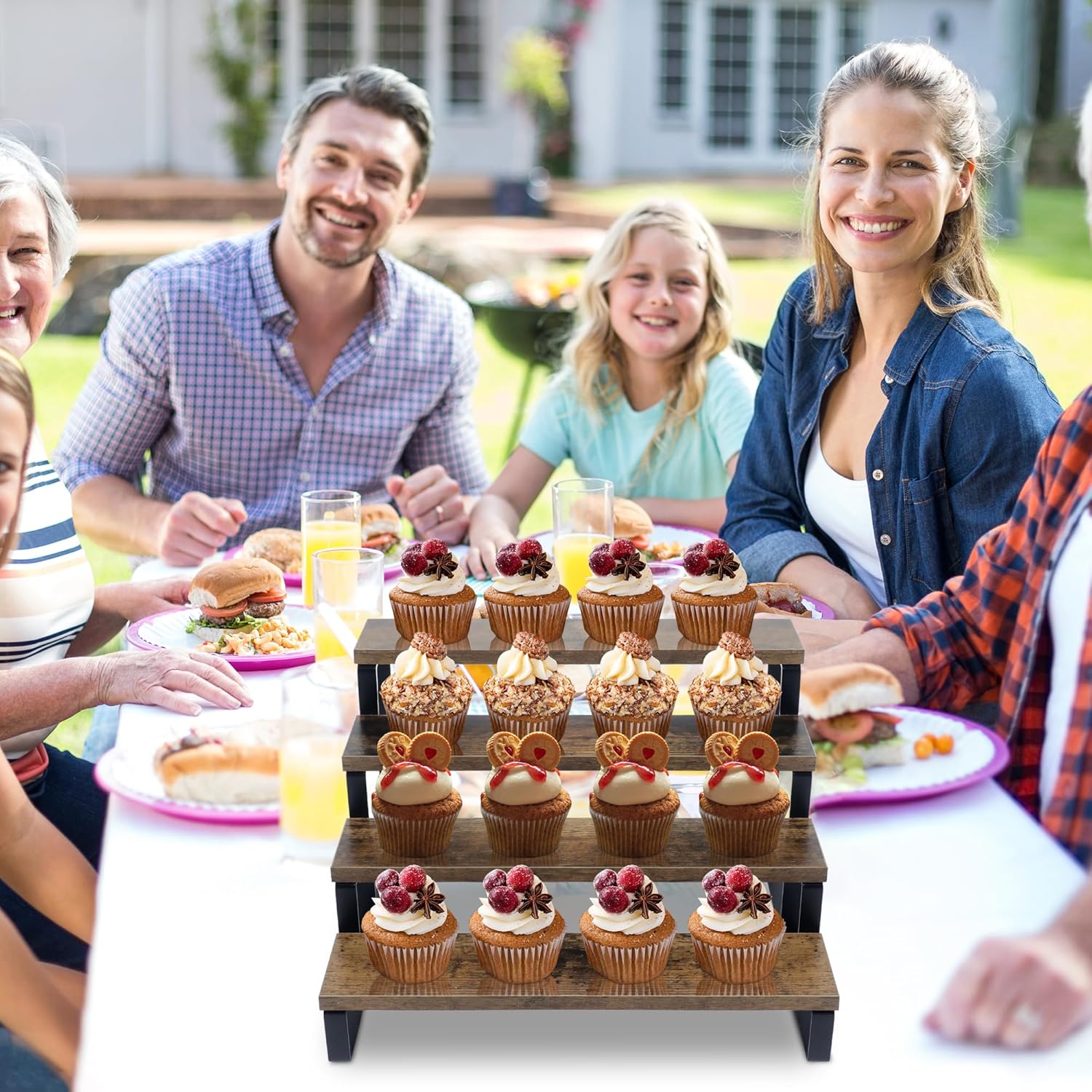 - 【Durable & Spacious Tiers】 Crafted with durability, this wood tiered tray stand accommodates various treats like cologne and pastries. The spacious tiers provide ample room for creative and inviting cupcake displays, enhancing any dessert table