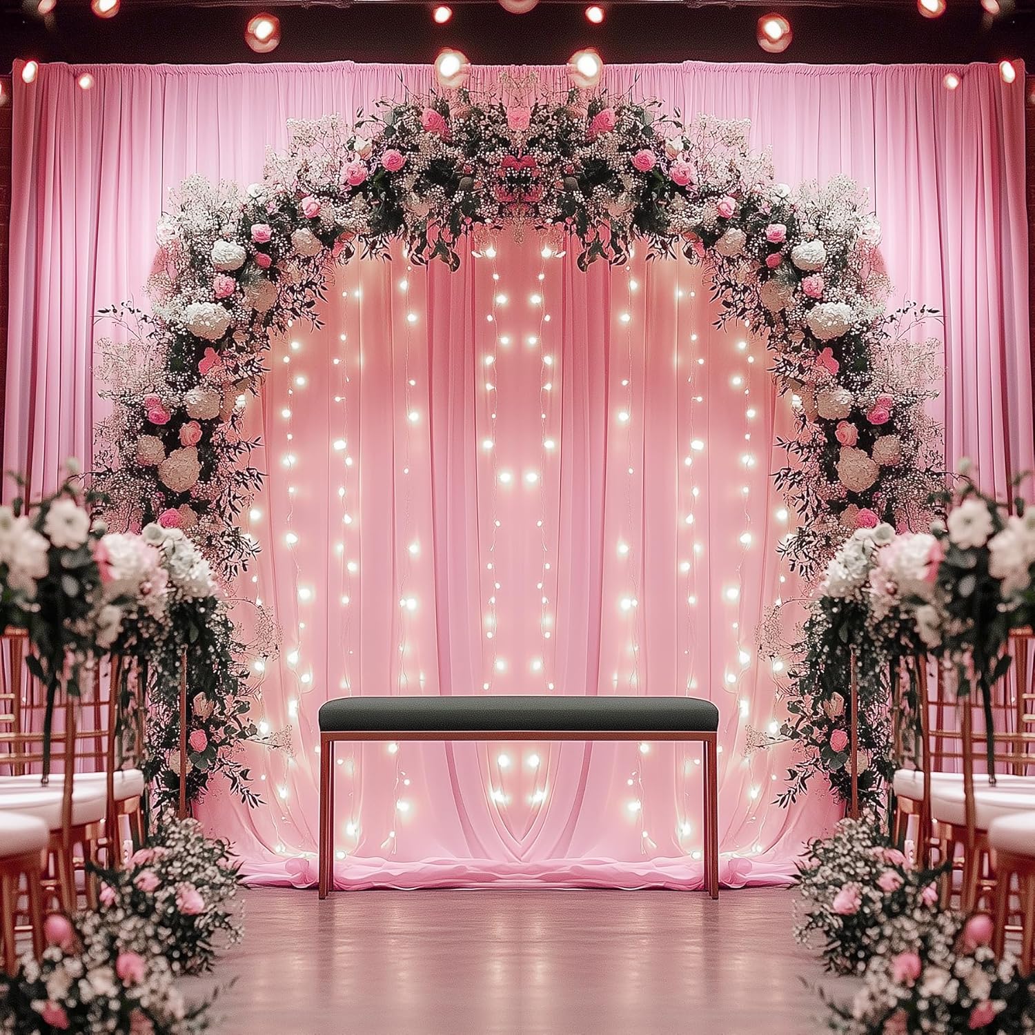 - Wrinkle Free Black Backdrop Curtain: This Black silky soft wedding backdrop for reception is made of wrinkle free material, known for its soft and silky texture, which will give you an extraordinary feeling of touch. The backdrop is exquisitely sewn, smooth and durable fpolyester with natural drape, add more elegance and romance to your weddings.