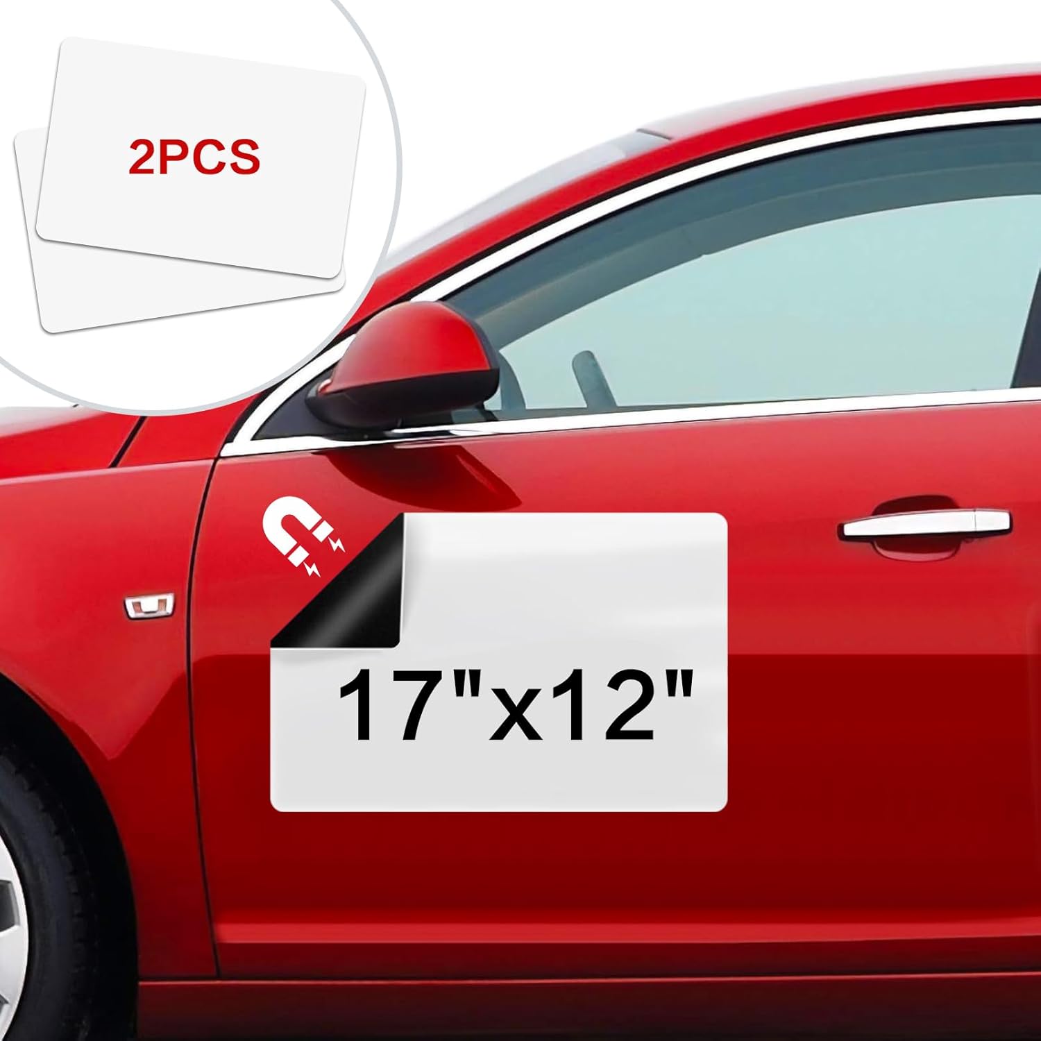 Thaibear Blank Car Magnets, 17" x 12", 2 Pack Car Door Magnets Signs for Vehicle, Rounded Corners Blank White Flexible Magnet Sheet Stickers for Car to Advertise Business and Personalized Decal