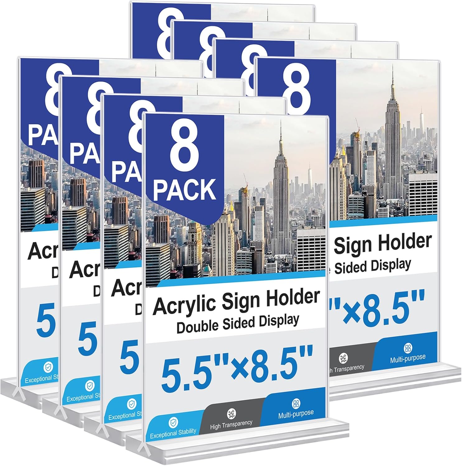 - 【Versatile and Multi-Purpose Use】 This 8 pack 5.5x8.5 acrylic sign holder is ideal for a variety of settings, including restaurants, offices, weddings, and vendor events. Display flyers, menus, photos, or promotional materials with ease
