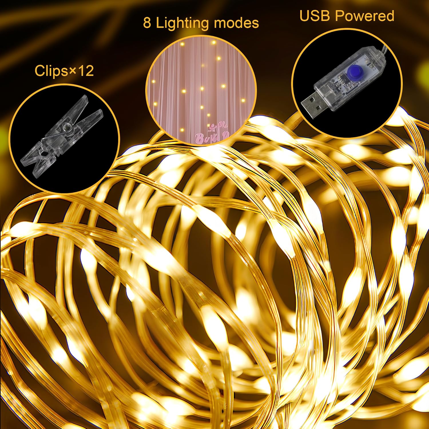 - Easy to Set: light curtain backdrop with rod pockets at the top for easy hanging on backdrop stand, attach the string lights to the sheer backdrop curtains with plastic clips, then untie the 10 light strings and plug the curtains lights into a portable external batteries or an outlet with a USB port. Note: Put away from sharp items to avoid causing the curtain with lights damaged.