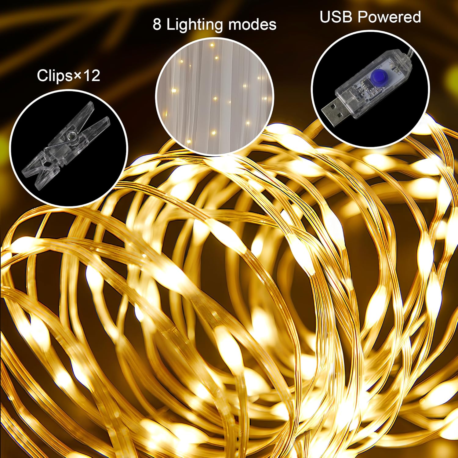 - Included Components : 2 panels soft white curtain with lights, 10ft warm white string light (USB Powered), 12pcs Transparent clips, 100 Pieces 2 panels soft white curtain with lights, 10ft warm white string light (USB Powered), 12pcs Transparent clips, 100 Pieces
