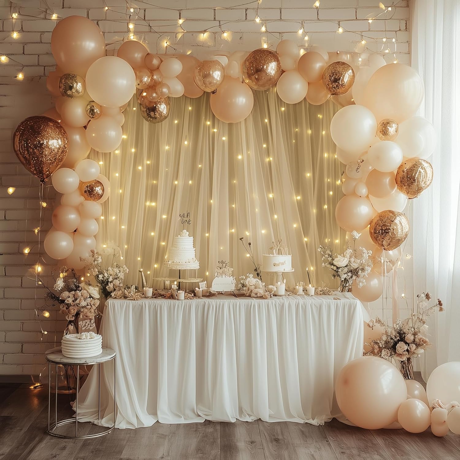 Tulle Backdrop Curtain with Lights String 10FT X 8FT Champagne Sheer Tulle Backdrop Curtains for Wedding Birthday Party Reception Photo Booth Background Decorations (2 Panels 5x8FT)