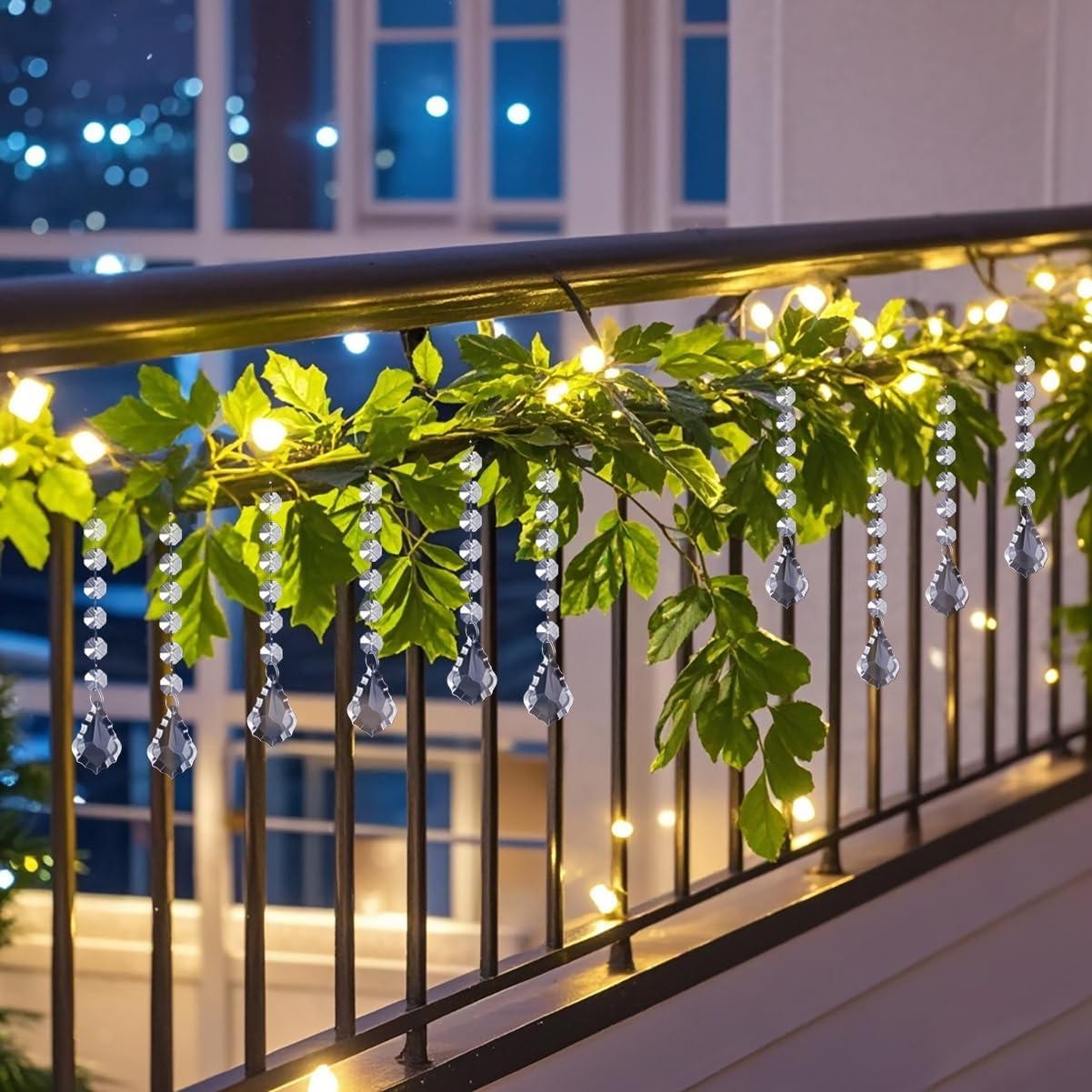 - Elegant Hanging Ornaments: Designed with teardrop acrylic prisms, combined with clear plastic icicle drops adorned with crystal beads, creating a festive and romantic ambiance. Ideal for decorating Christmas trees, centerpieces, chandeliers, windows, and various corners of your home.