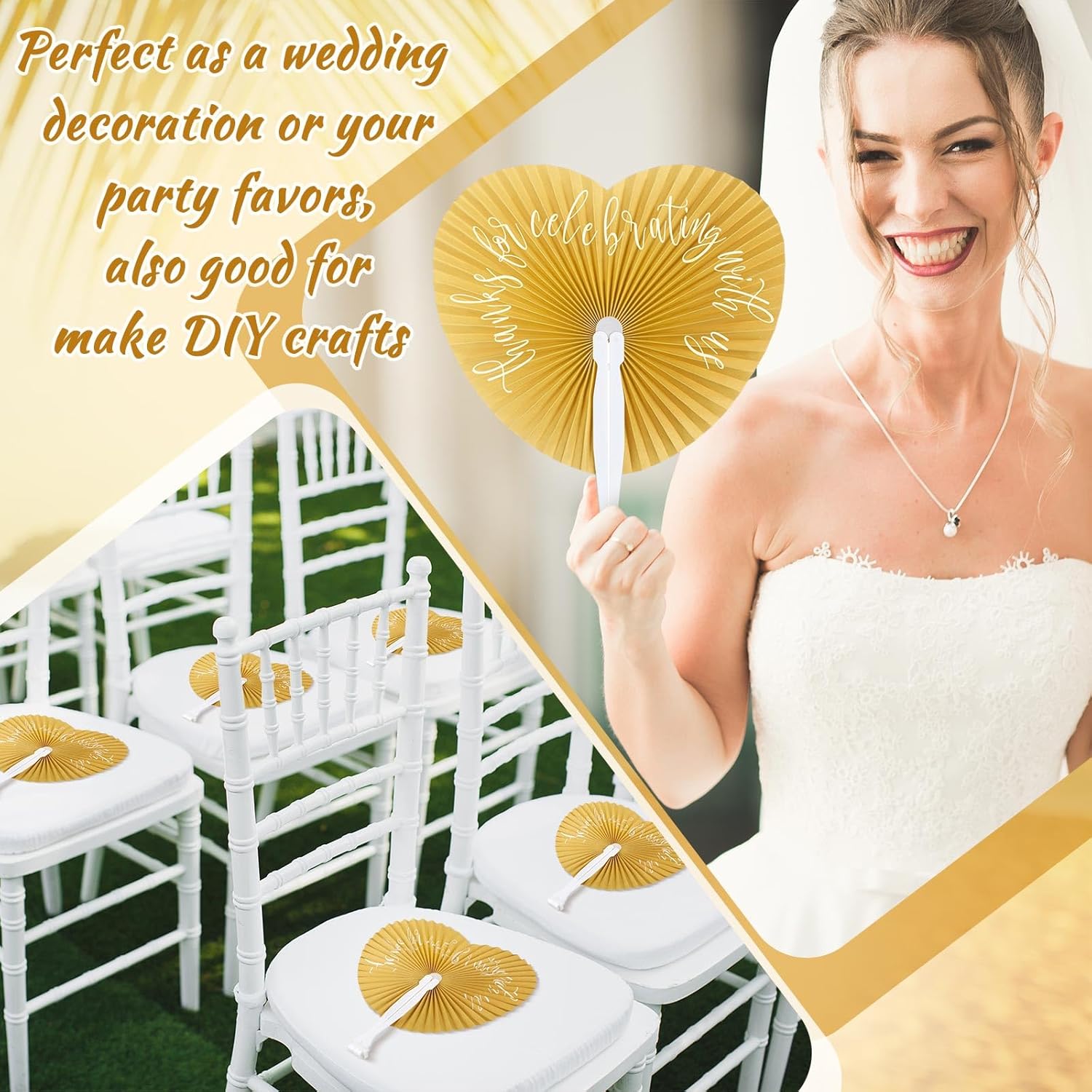 120 Pieces Paper Hand Held Fan Bulk Paper Folding Fans for Weddings Foldable Wedding Fans Bridesmaid Gift for Guest Bridal Shower Dancing Party DIY Craft Photo Props Wall Decoration(Gold,Heart)