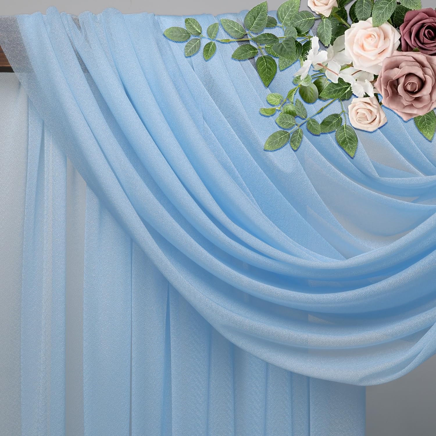 Wedding Arch Draping Fabric 4 Panels 28.7" x 20FT Baby Blue Sheer Chiffon Backdrop Drapes for Wedding Ceremony Birthday Party Bridal Shower Outdoor Decoration