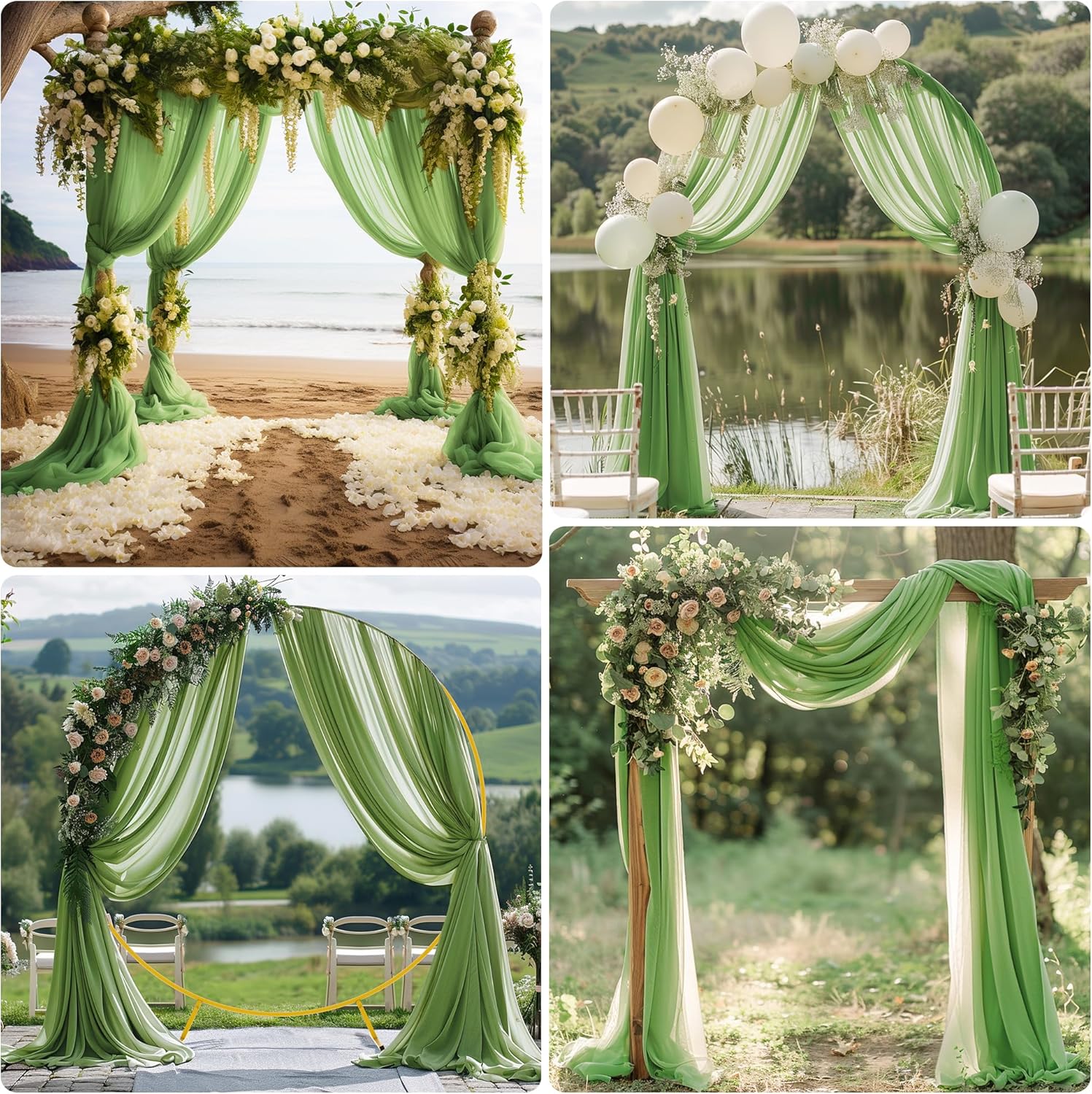 Wedding Arch Draping Fabric 6 Panels 28.7" x 20FT Sage Green Sheer Chiffon Backdrop Drapes for Wedding Ceremony Birthday Party Bridal Shower Outdoor Decoration