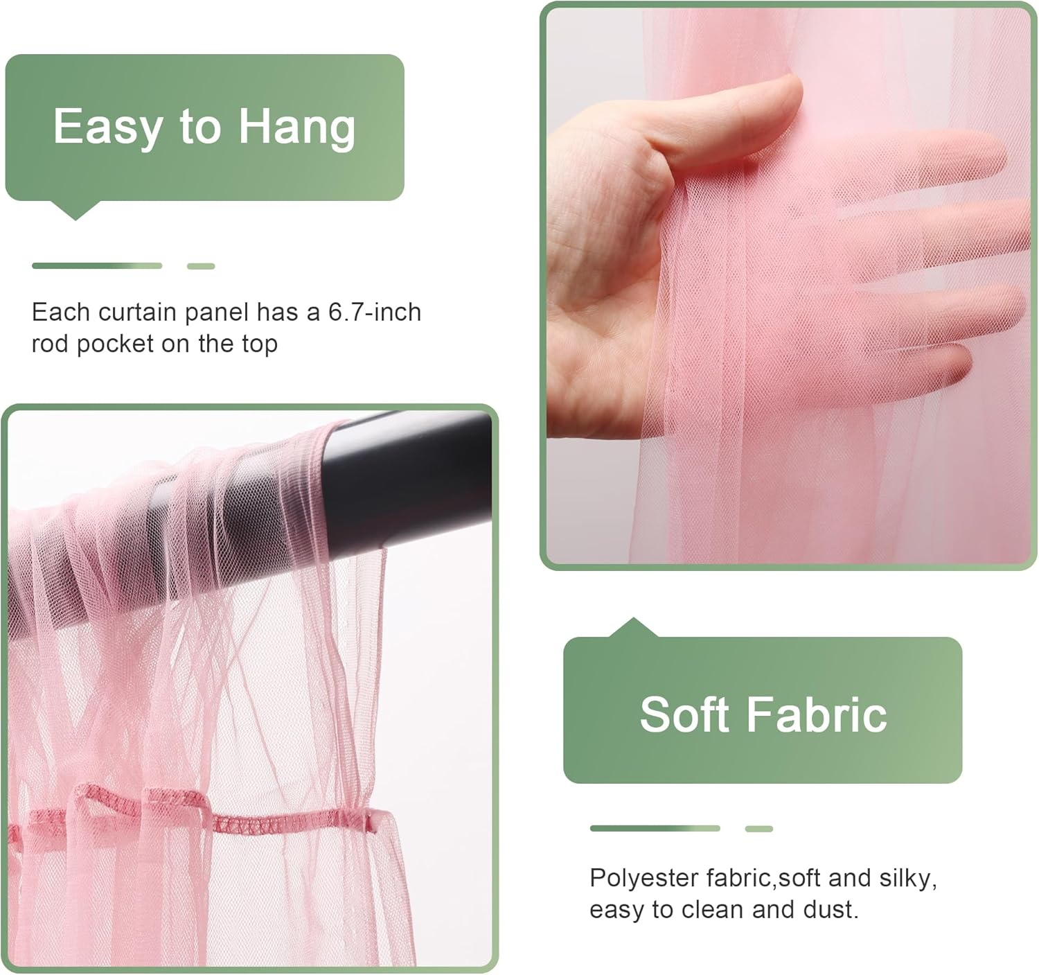- Package Includes: The package includes 2 panels soft pink curtain with lights, each panel tulle backdrop curtain size is 5FT width and 10FT height, a set of 10ft warm white string light (USB Powered) and 12pcs Transparent clips.