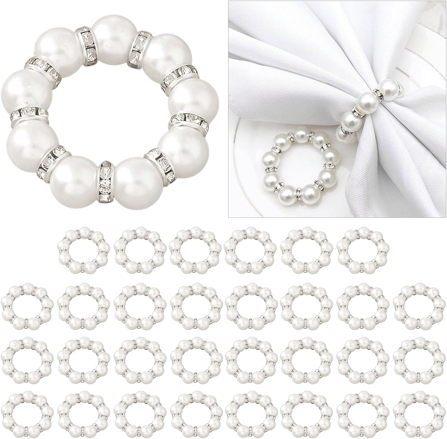 - Elegant Napkin Rings Set: This set includes white or pink napkin rings made of imitation pearl and rhinestone, adding a touch of elegance to your table setting. Perfect for daily use and special occasions like weddings, parties, and more
