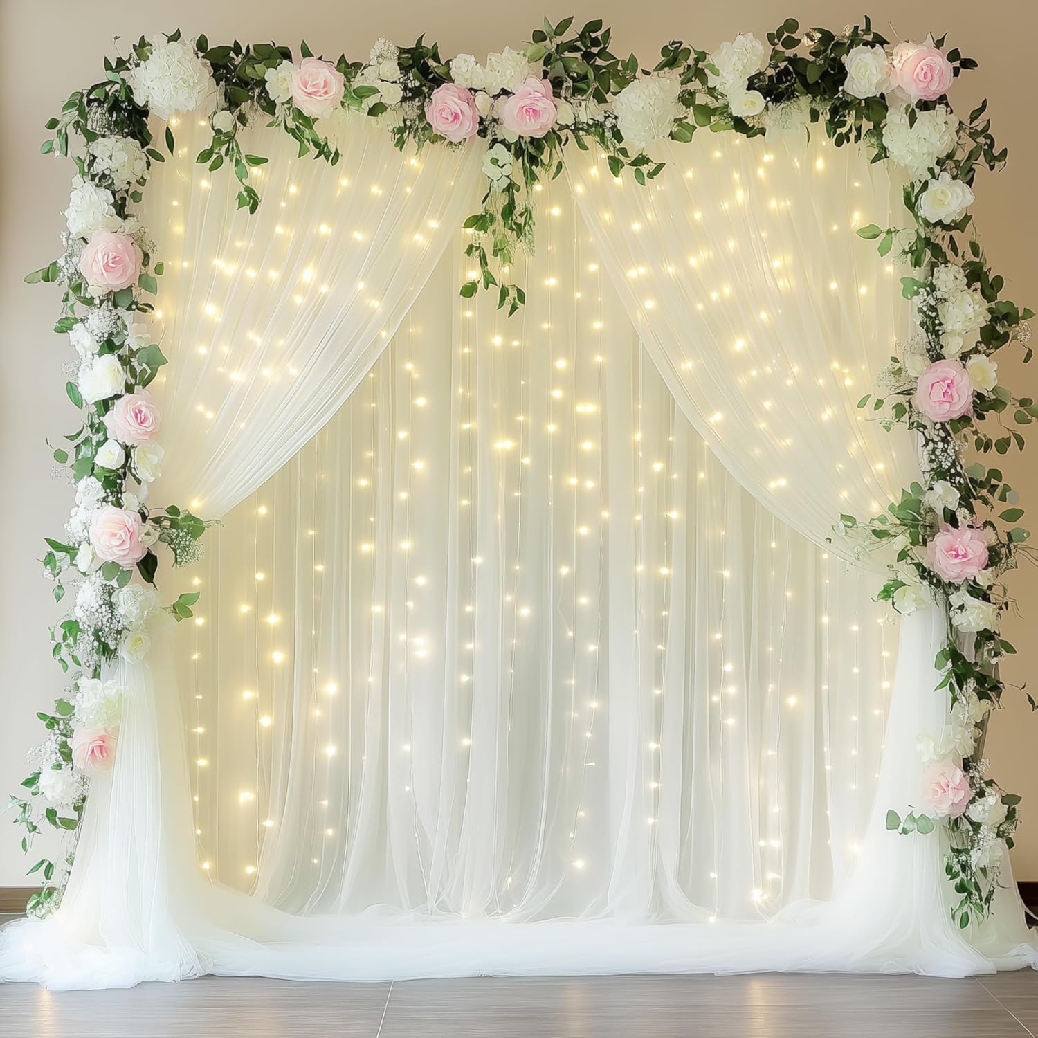 - Multiple Use: The sheer curtains with lights string is well-integrated. Fomcet tulle backdrop curtain with lights can be used for really any occasion such as birthday party, baby shower, receptions, graduations, bridal showers, wedding backdrops for reception, photo booth backdrops decorations.