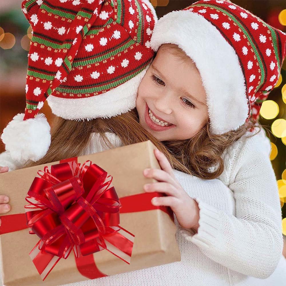 7 Pieces Large Pull Bows, 6 inche, Big Bow for Gift Wrapping, Christmas Party Birthday Gift, Wedding Baskets,Valentine's Day Gift Decorations, Flower Decoration (Red)