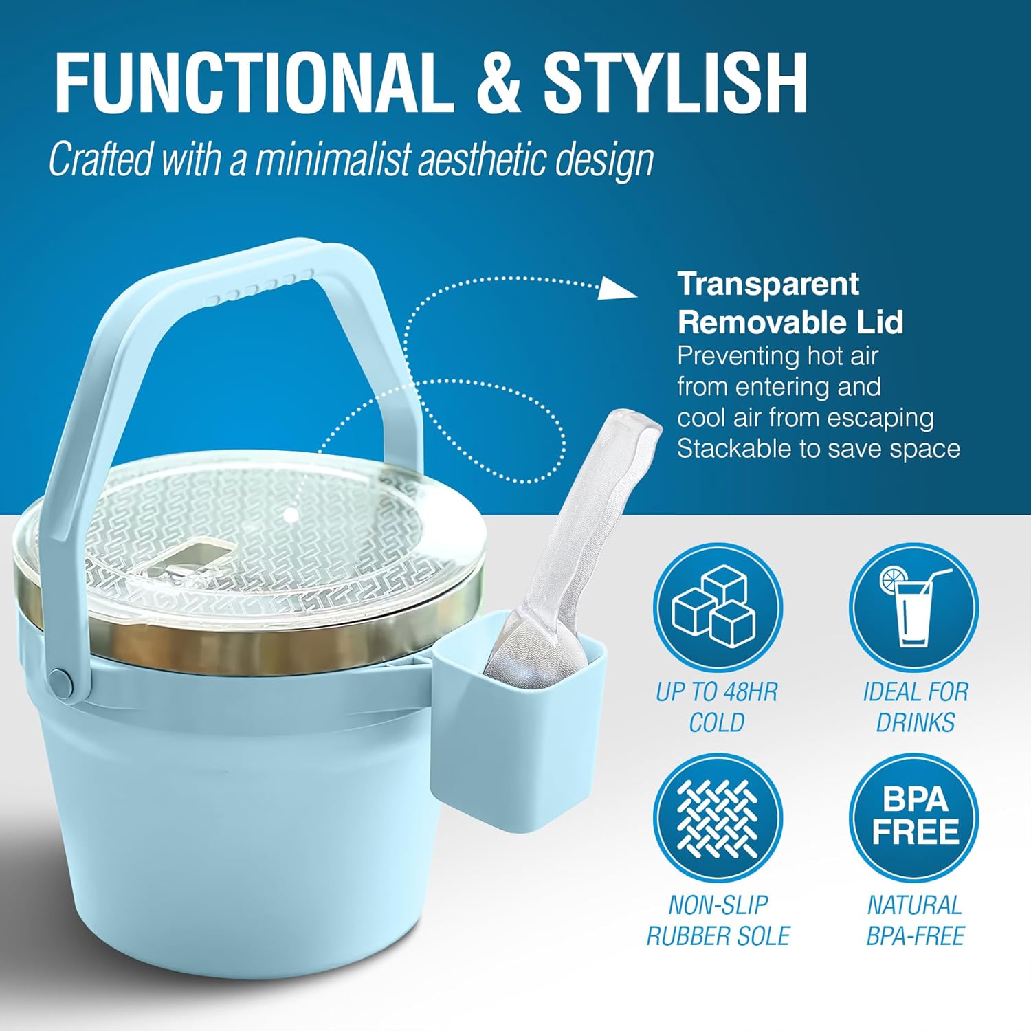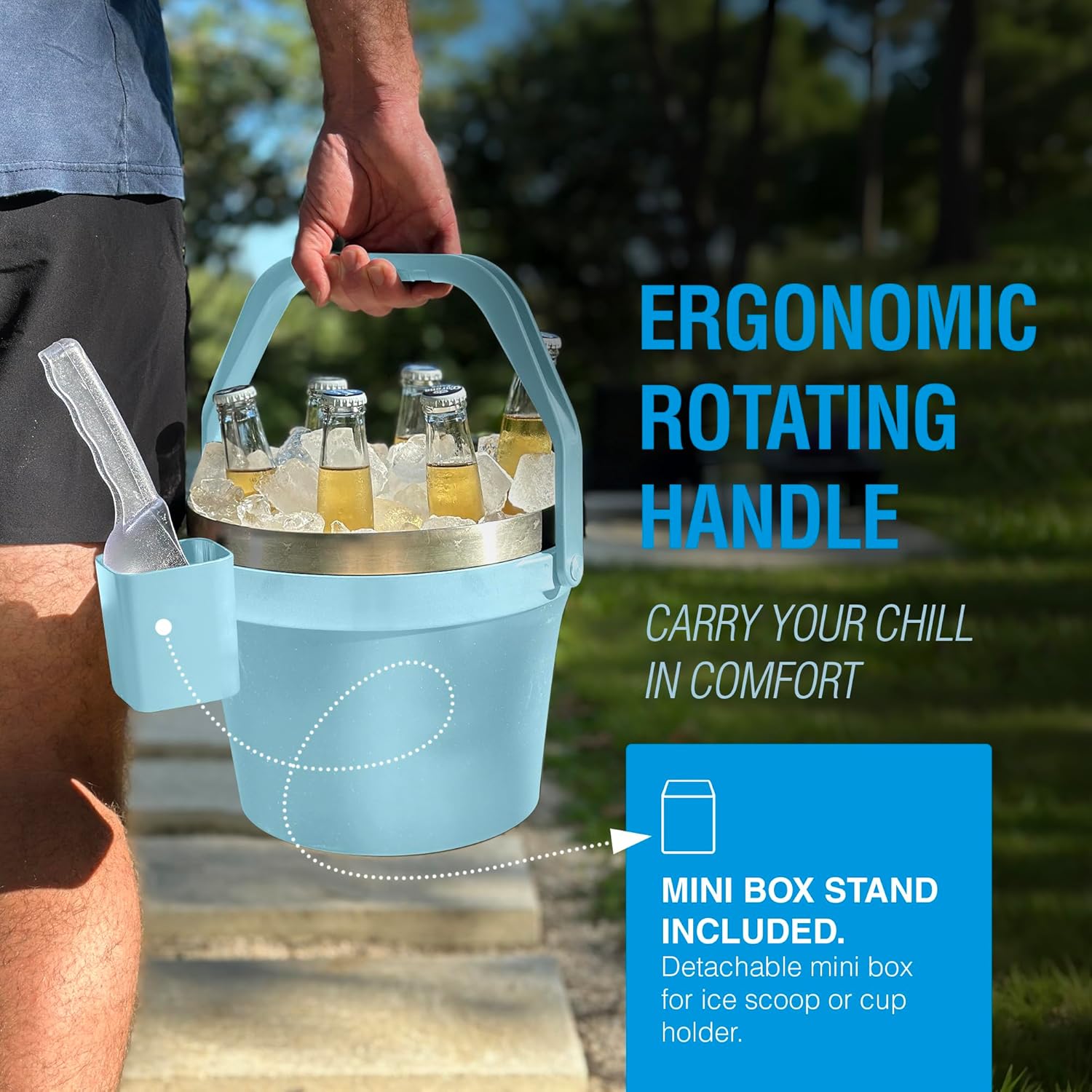 Insulated Ice Bucket with Lid & Scoop-XL Double-Walled, bar Essentials for Entertaining, Holiday Party, Stainless Steel Wine Chiller, Beverage Tub with Handle, Bottle Opener, Great Gift(Ocean Blue)