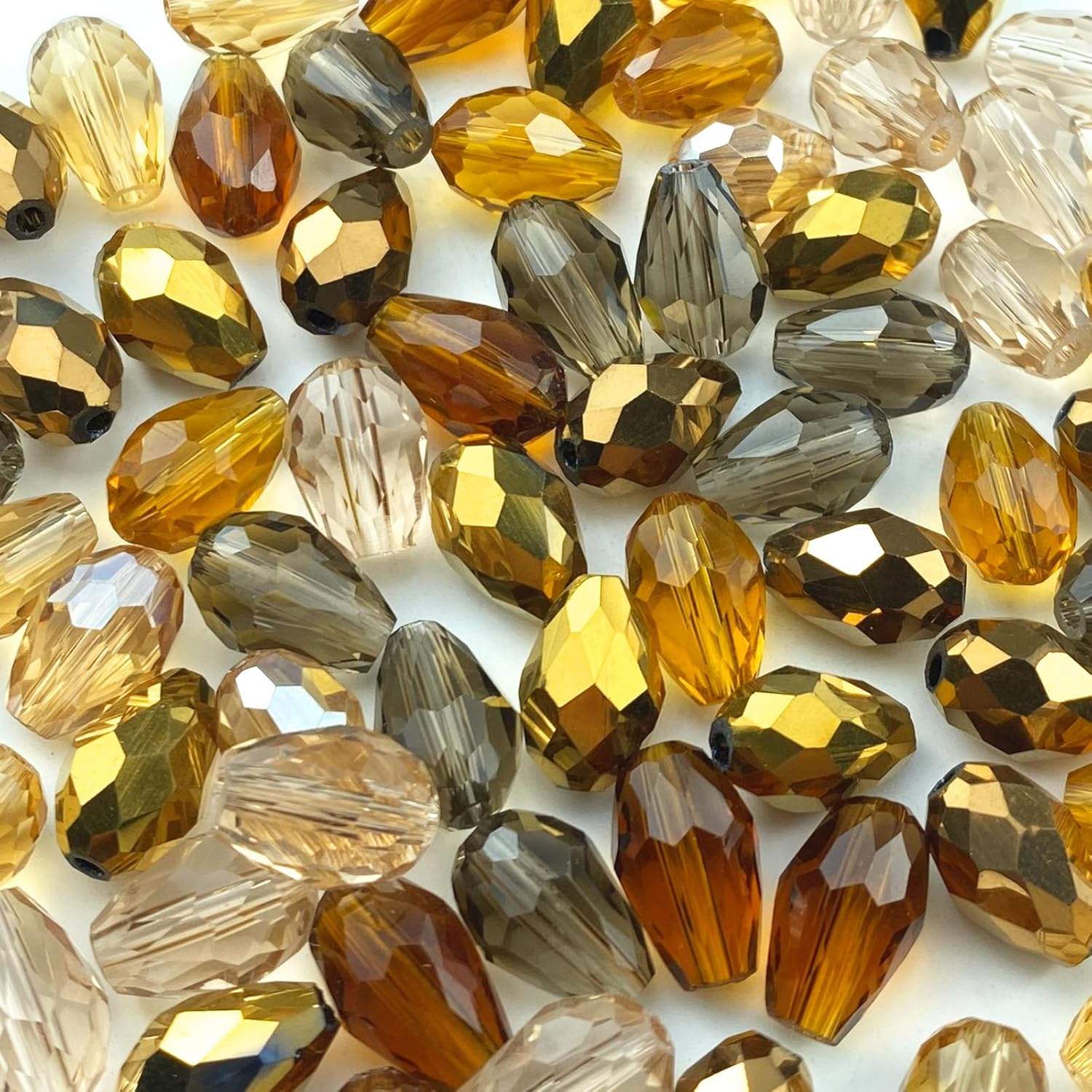 200pcs 3x5mm Teardrop Crystal Glass Beads Vertical Hole Faceted Loose Spacer Beads for DIY Craft Jewelry Making Necklace Bracelet Earring Wind Chimes(Brown Series)