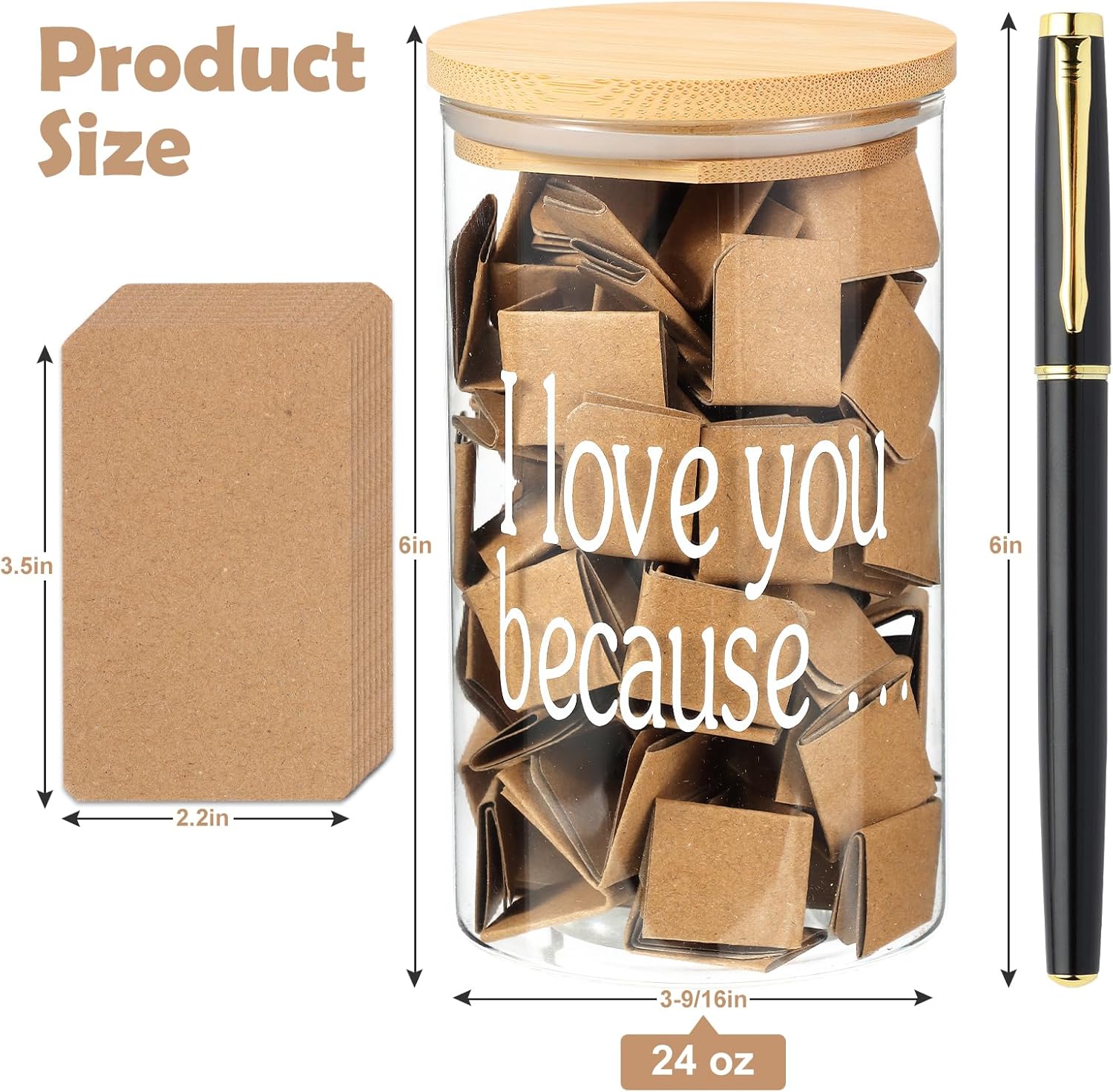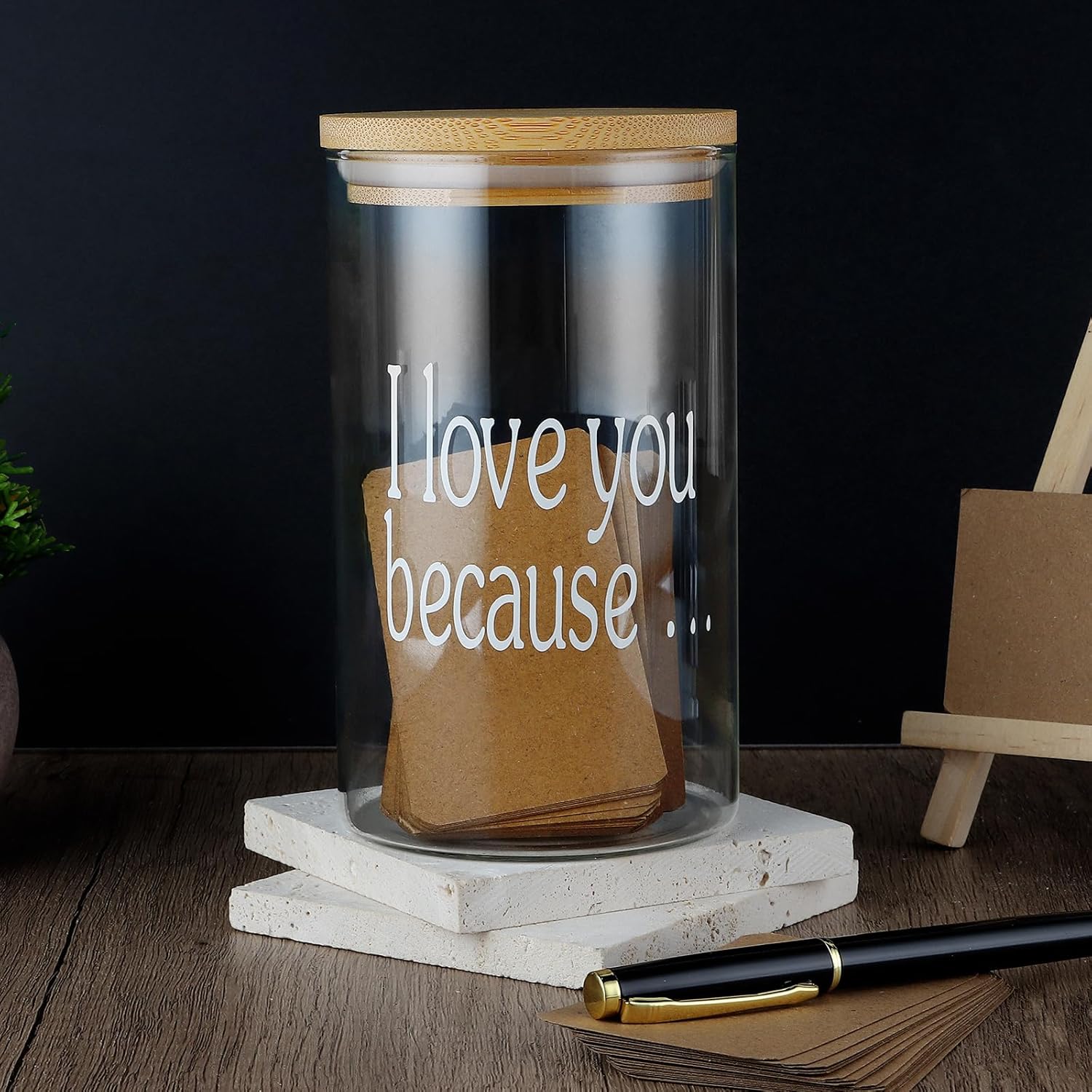- Excellent material: Our love note jar is made of high-quality glass, and the paper card is cut into a suitable size for easy placement in the jar. The matching neutral pen can write well, smoothly, convenient and practical.