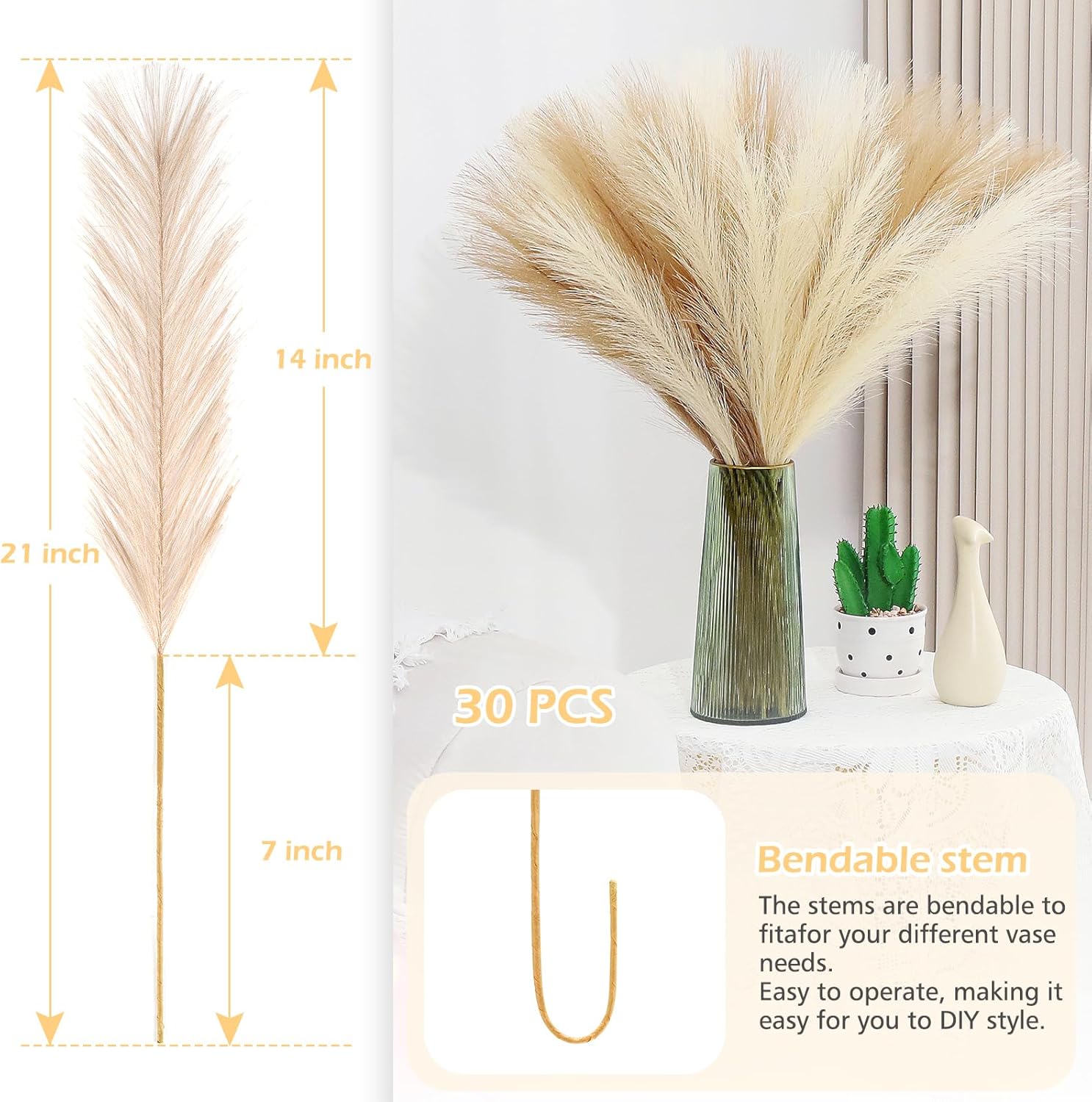 Pampas Grass Decor 30 Pcs 21.7 Inch Faux Brown Pampas Grass Bulk Artificial Dried Flowers Small Vase Filler Pompas Grass.